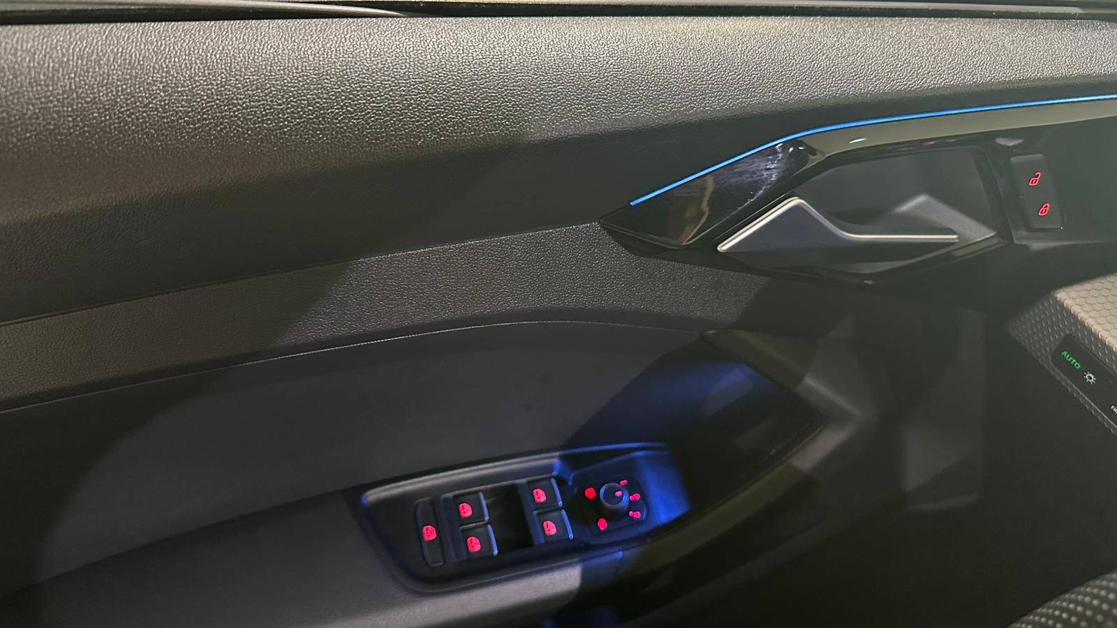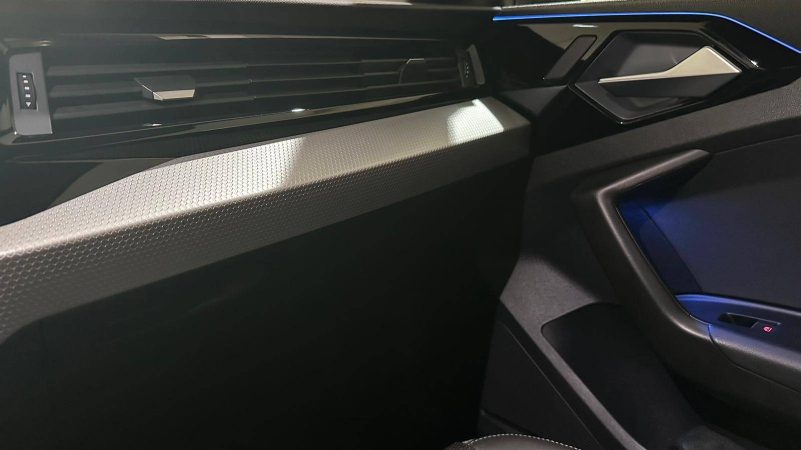 Applications décoratives étendues sur le tableau de bord façon verre en noir, de l'écran couleur MMI touch jusqu'aux triangles de portières AV façon verre en noir