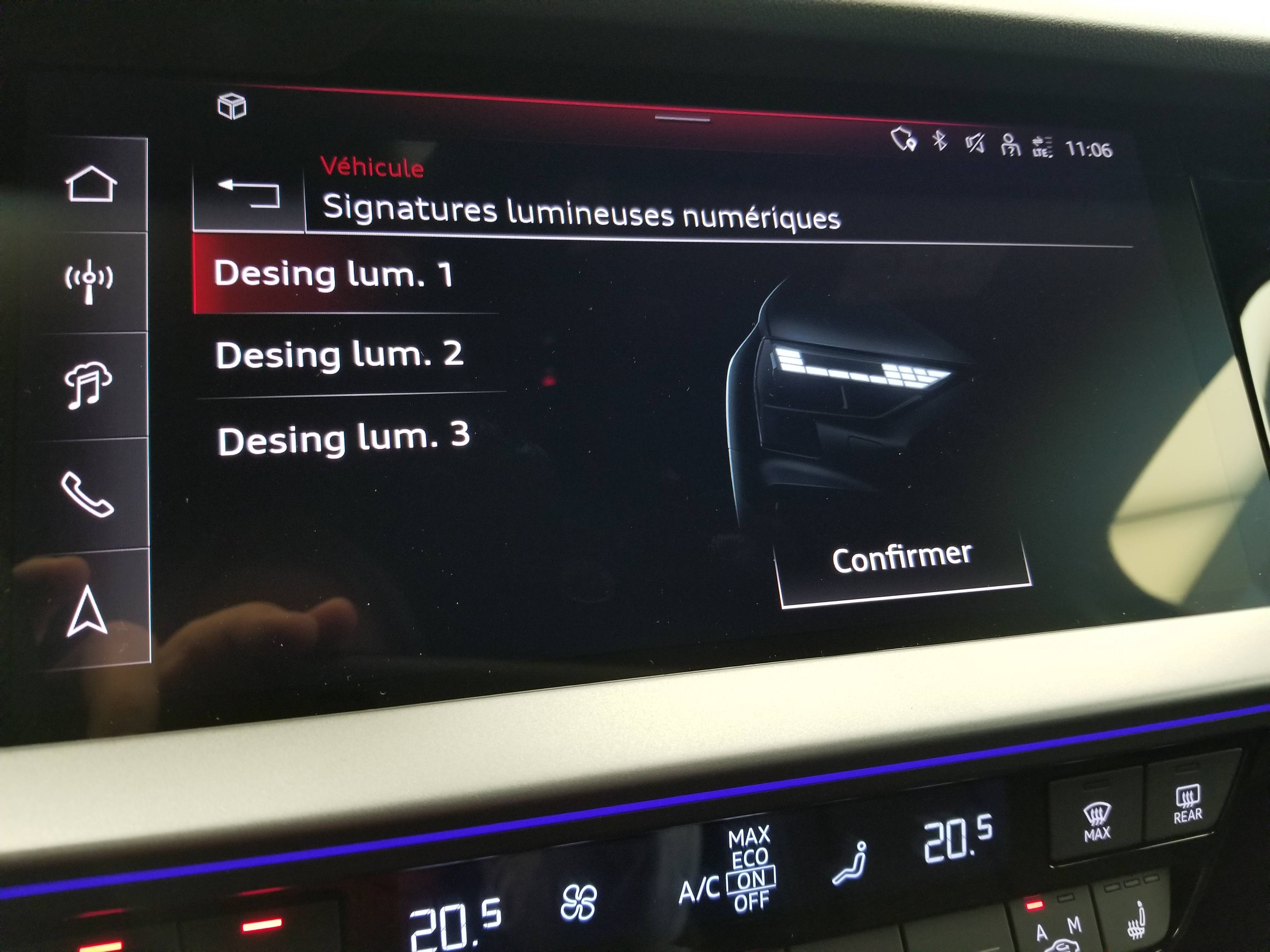 Pack éclairage d'ambiance plus 30 couleurs diff. pour le profil de couleur personnalisé. l'éclairage de contour du tableau de bord, l'éclairage d'ambiance des portes AV et AR, l'éclairage de contour des portes AV et AR, le compartiment de rangement de la console centrale, l'éclairage des contours de la console centrale, porte-gobelets éclairés. en blanc :éclairage d'entrée sous les portes et des caves à pieds AV et AR