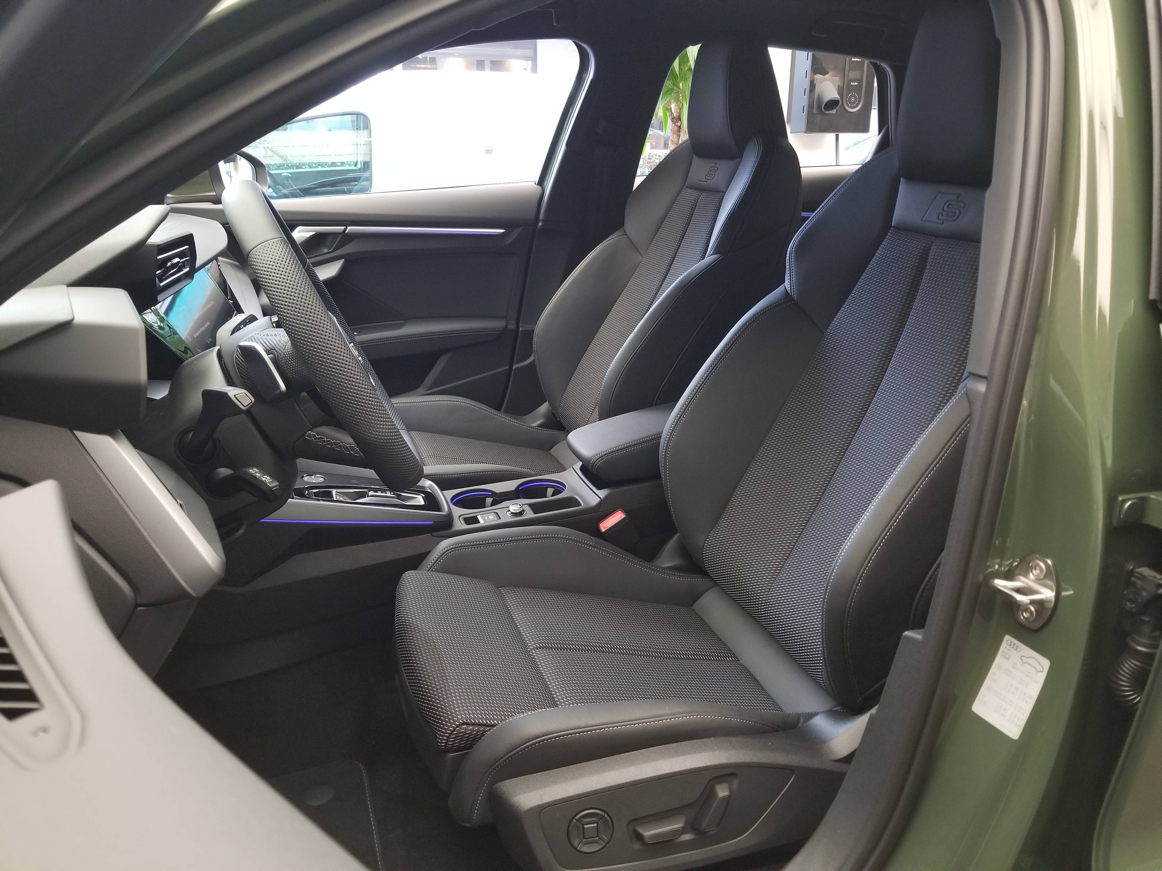 Pack intérieur S line 1 Sièges sport à l'AV, Sellerie en combinaison tissu Pouls/similicuir avec estampagne S, Pédalier en acier inoxydable, Enjoliveurs de seuil de porte avec inserts en aluminium à l'AV, Dossier de banquette AR rabattable 60/40, Application de volant en style chrome, emblème S, poignées de volant en cuir perforé et couture contrastée, Pavillon en tissu noir, Accoudoir en matériaux synthétiques, Style aluminium à l'intérieur