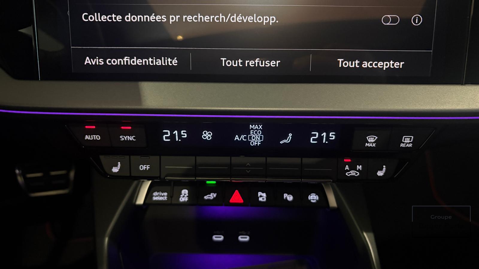 Pack éclairage d'ambiance pro 5 profils de couleurs prédéfinis et interactifs activé via l'Audi Drive Select