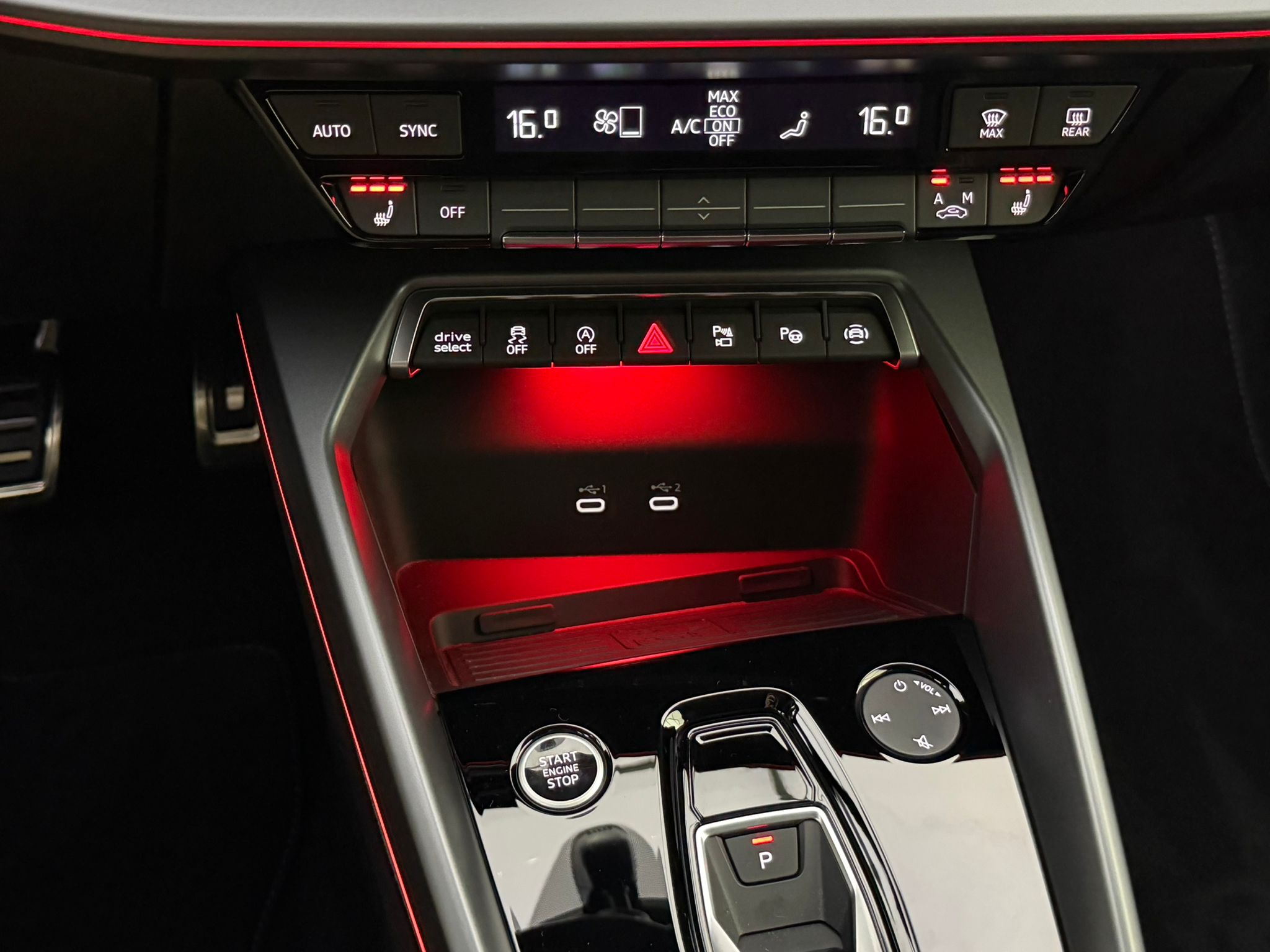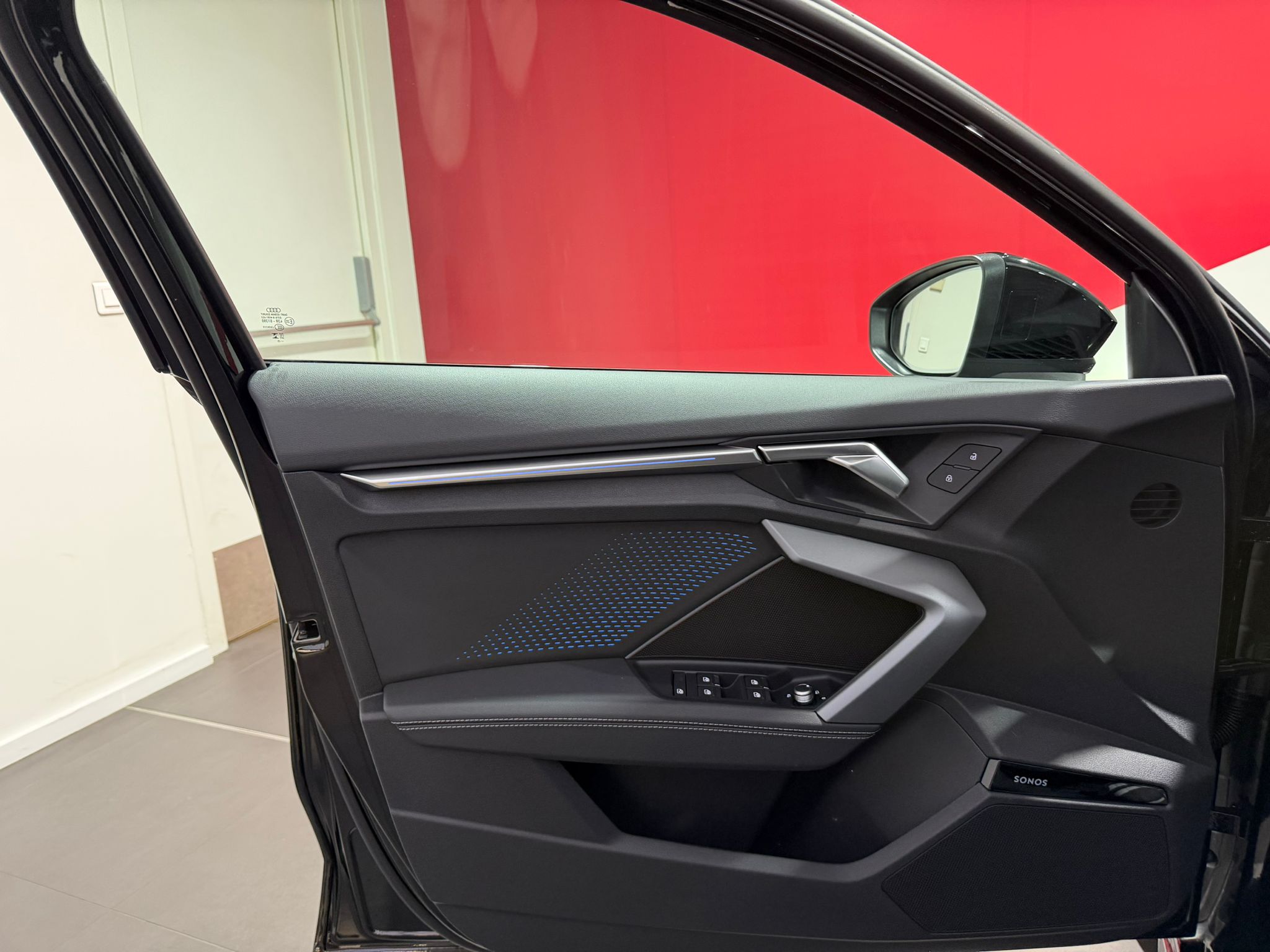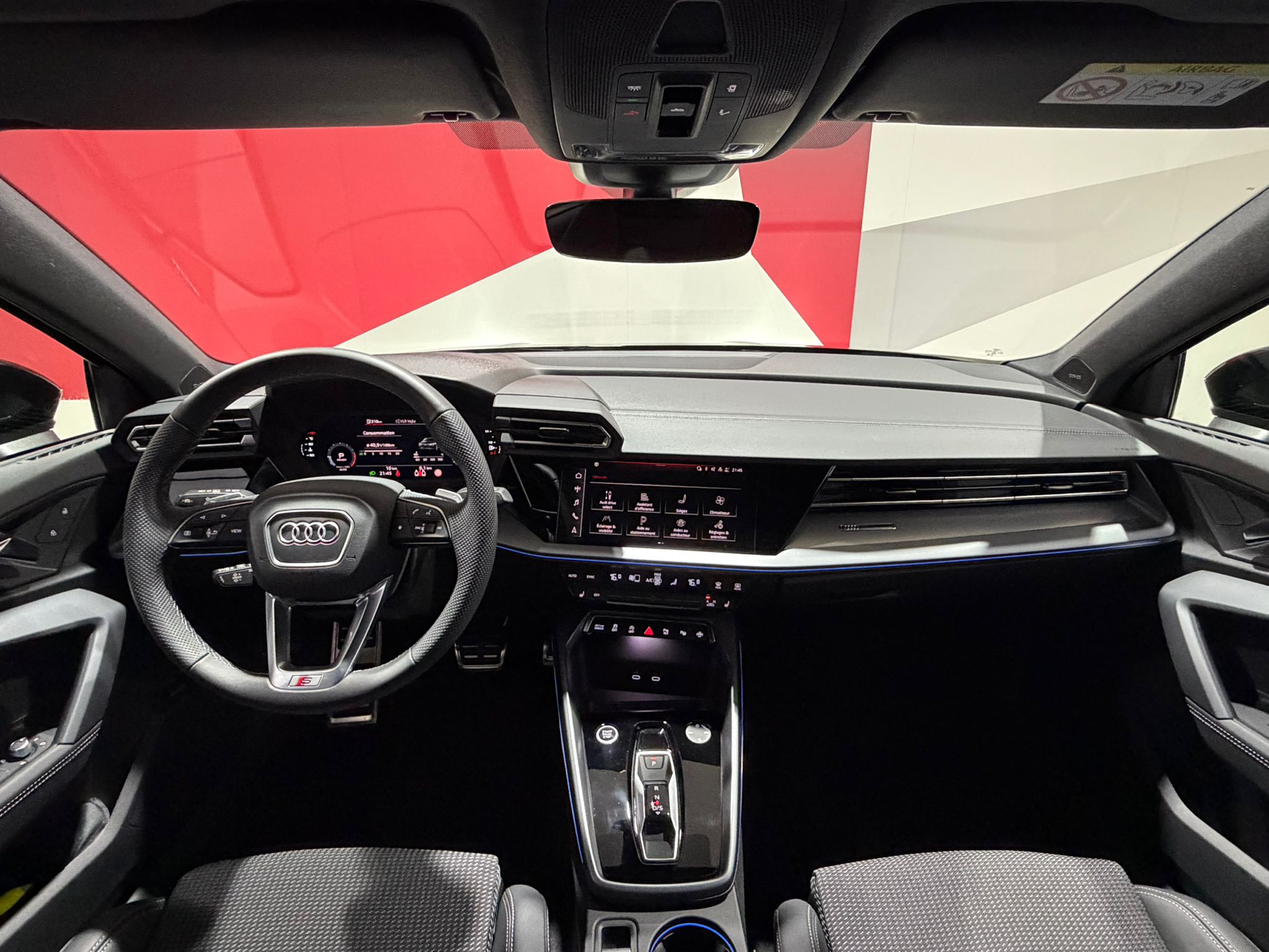 Pack intérieur S line 1 Sièges sport à l'AV, Sellerie en combinaison tissu Pouls/similicuir avec estampagne S, Pédalier en acier inoxydable, Enjoliveurs de seuil de porte avec inserts en aluminium à l'AV, Dossier de banquette AR rabattable 60/40, Application de volant en style chrome, emblème S, poignées de volant en cuir perforé et couture contrastée, Pavillon en tissu noir, Accoudoir en matériaux synthétiques, Style aluminium à l'intérieur