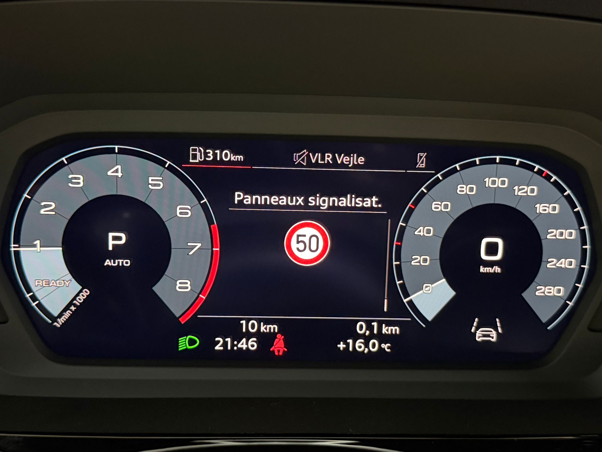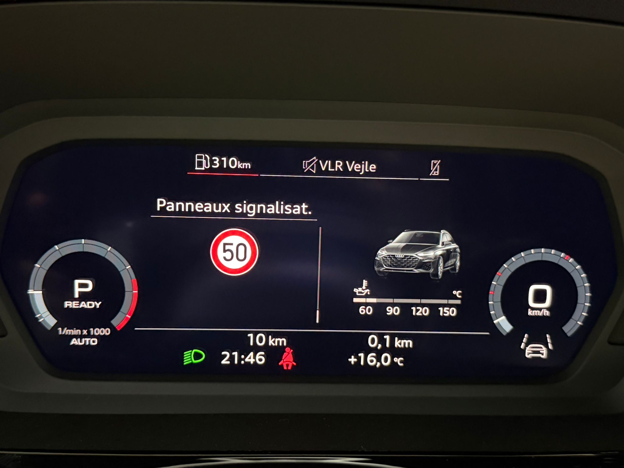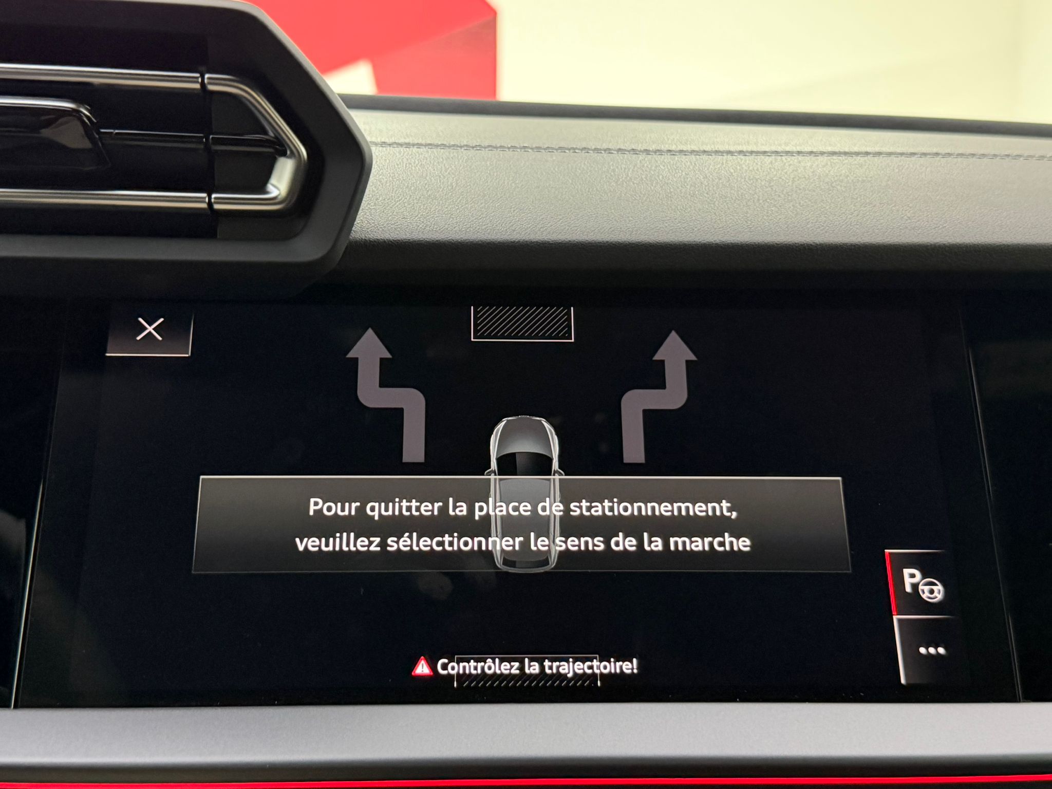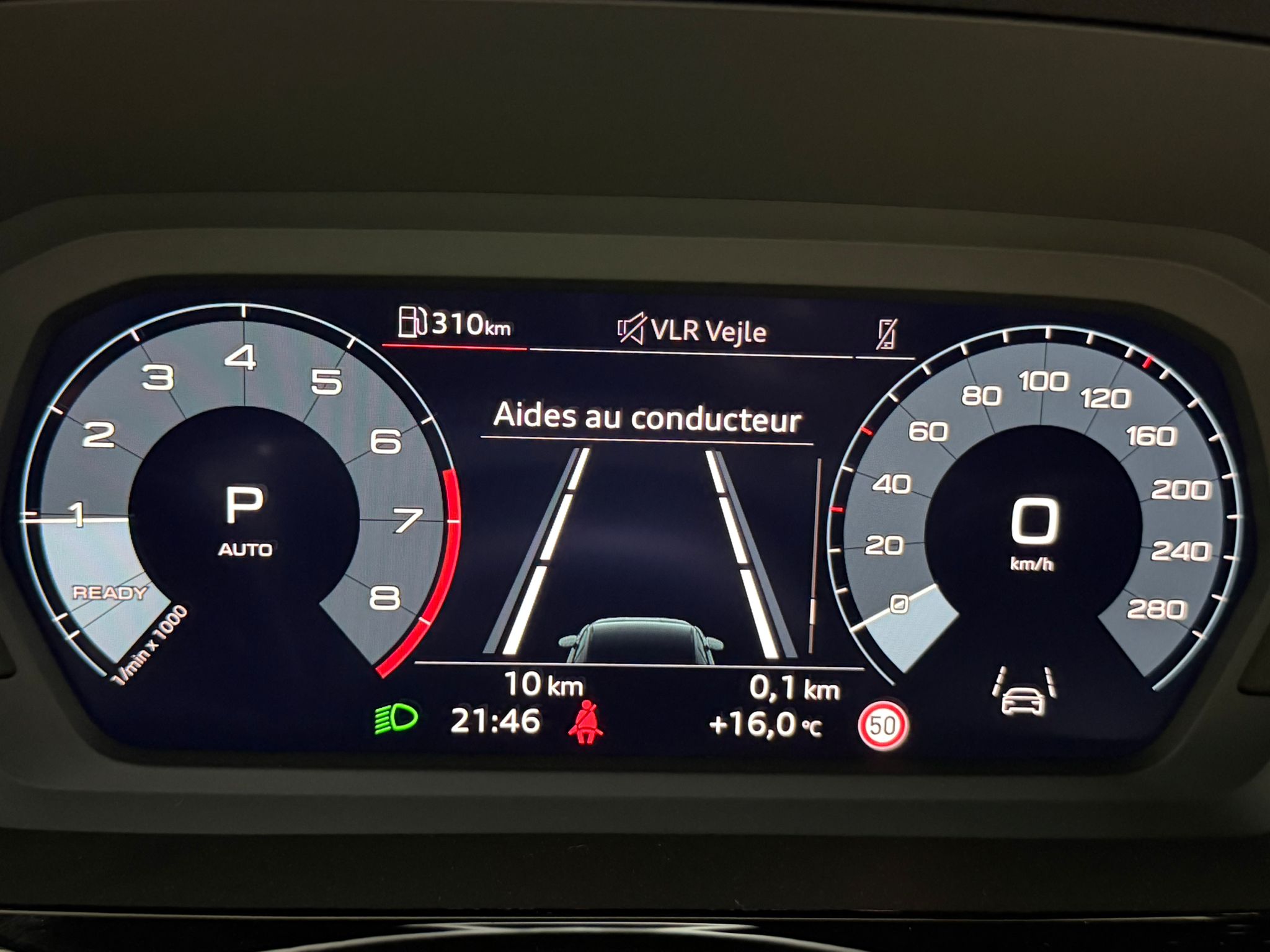 Pack assistance route - Régulateur de vitesse adaptatif avec assistance d'urgence et contrôle prédictif - Reconnaissance des panneaux de signalisation par caméra - Park assist plus avec système de stationnement avec affichage à 360 - Assistance latérale avec alerte de sortie et assistance au trafic transversal AR - Aide à l'embardée et aide au virage - Audi pre sense basic et Audi pre sense rear
