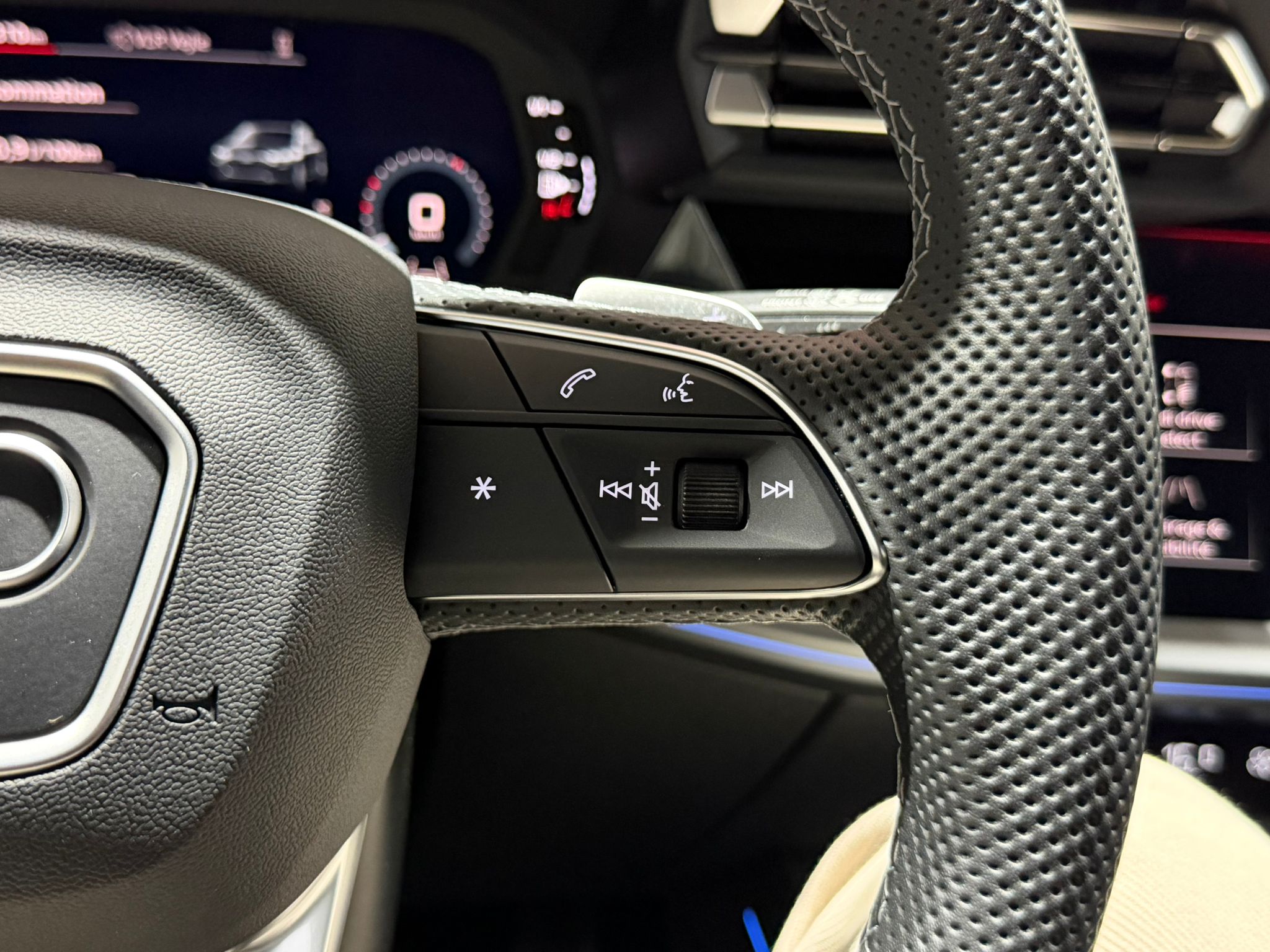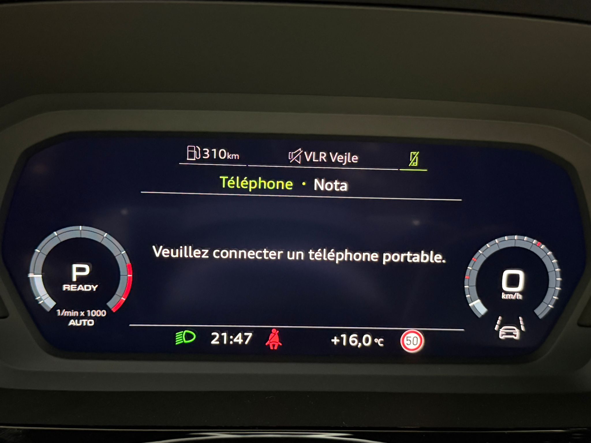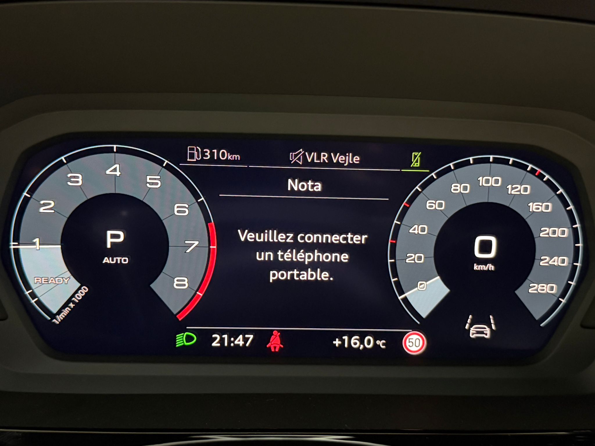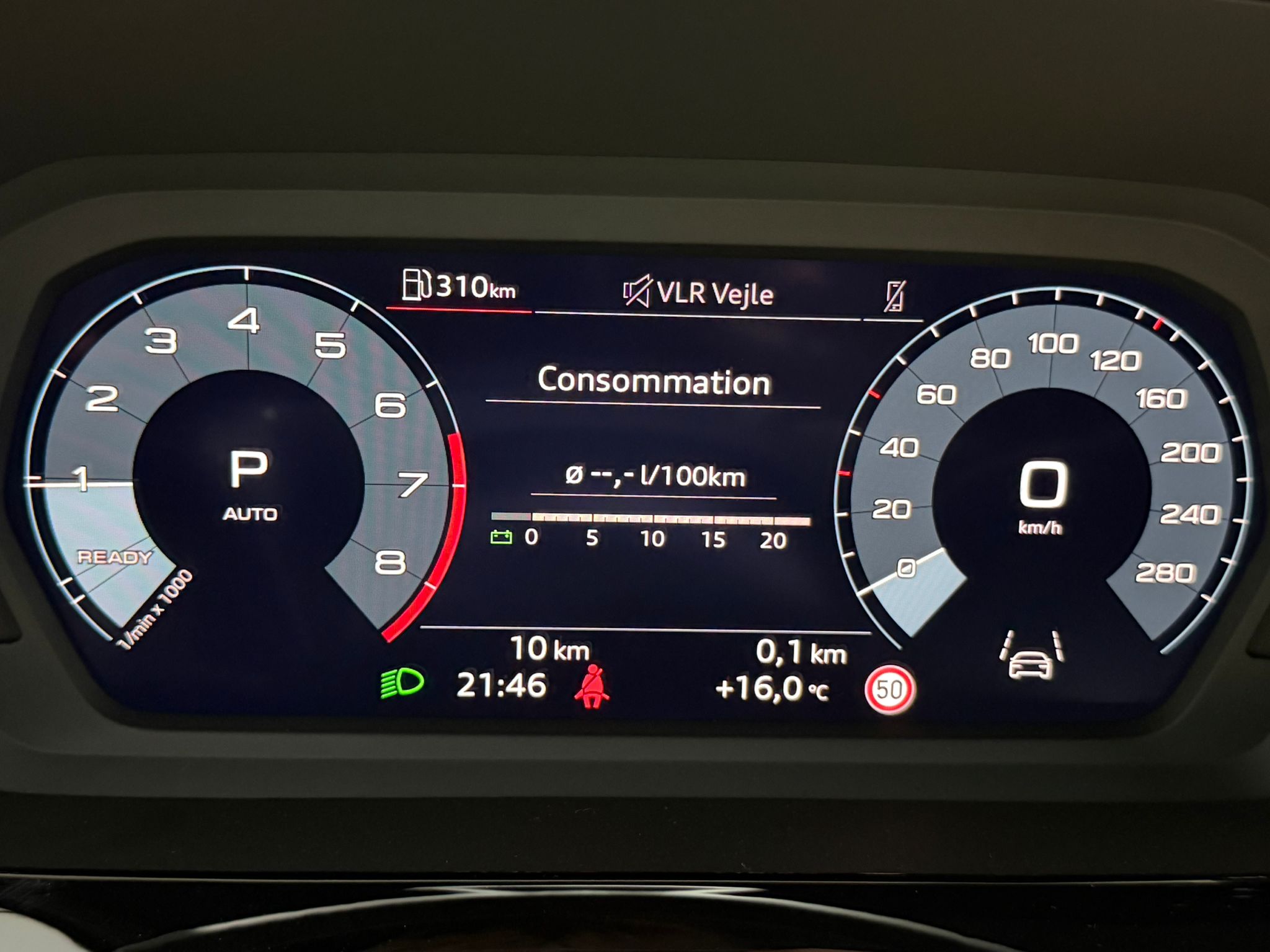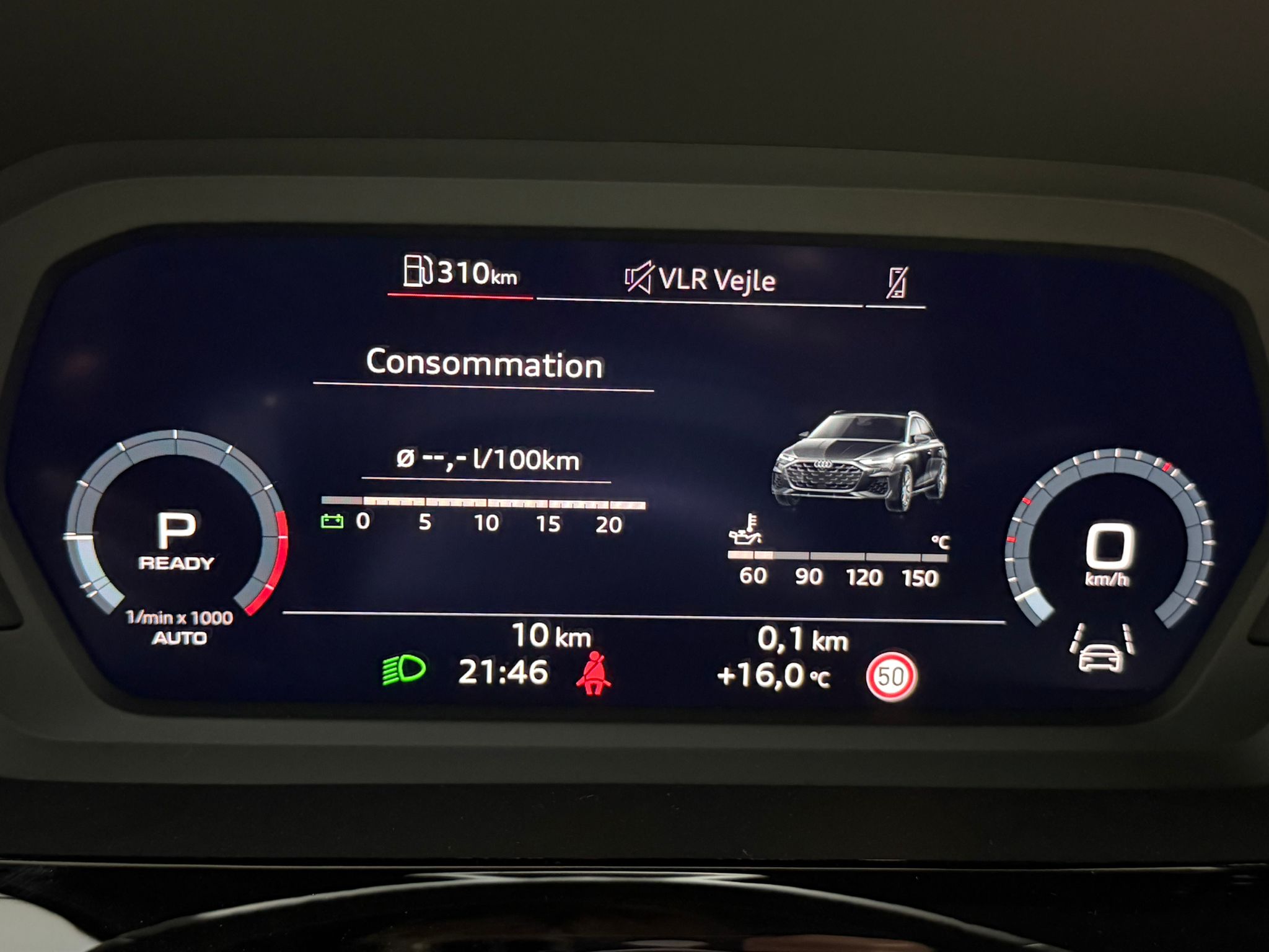 Pack assistance route - Régulateur de vitesse adaptatif avec assistance d'urgence et contrôle prédictif - Reconnaissance des panneaux de signalisation par caméra - Park assist plus avec système de stationnement avec affichage à 360 - Assistance latérale avec alerte de sortie et assistance au trafic transversal AR - Aide à l'embardée et aide au virage - Audi pre sense basic et Audi pre sense rear
