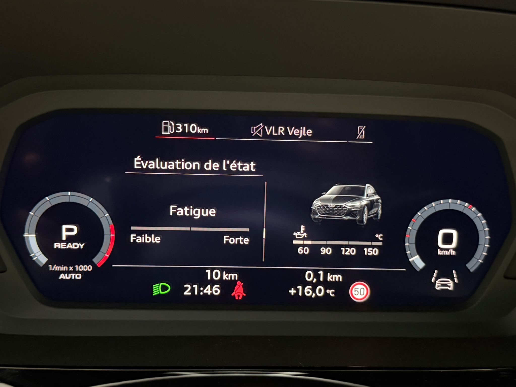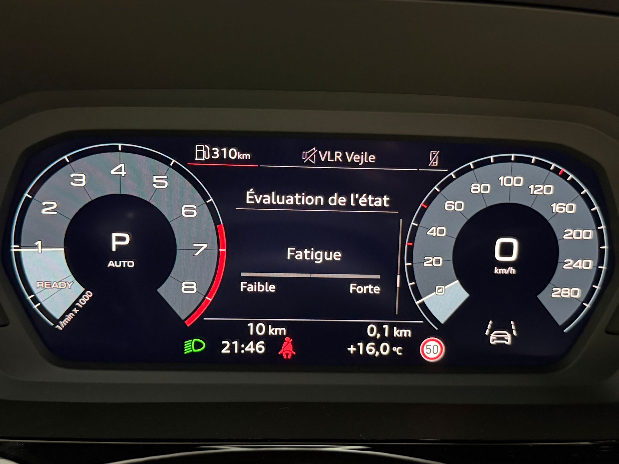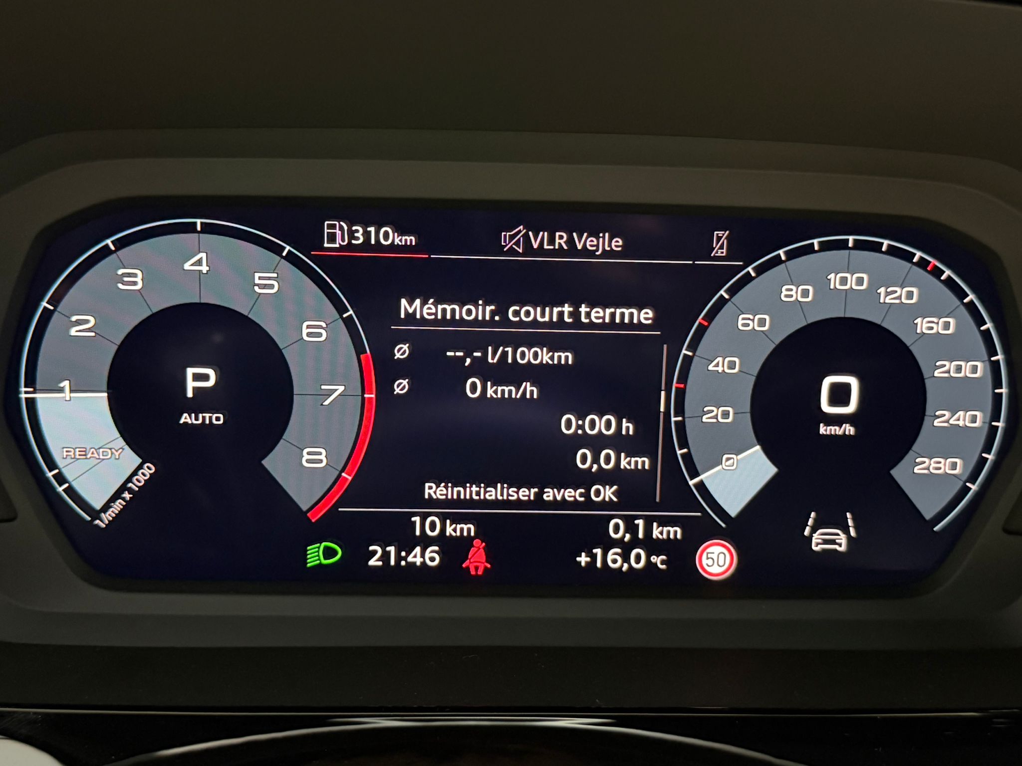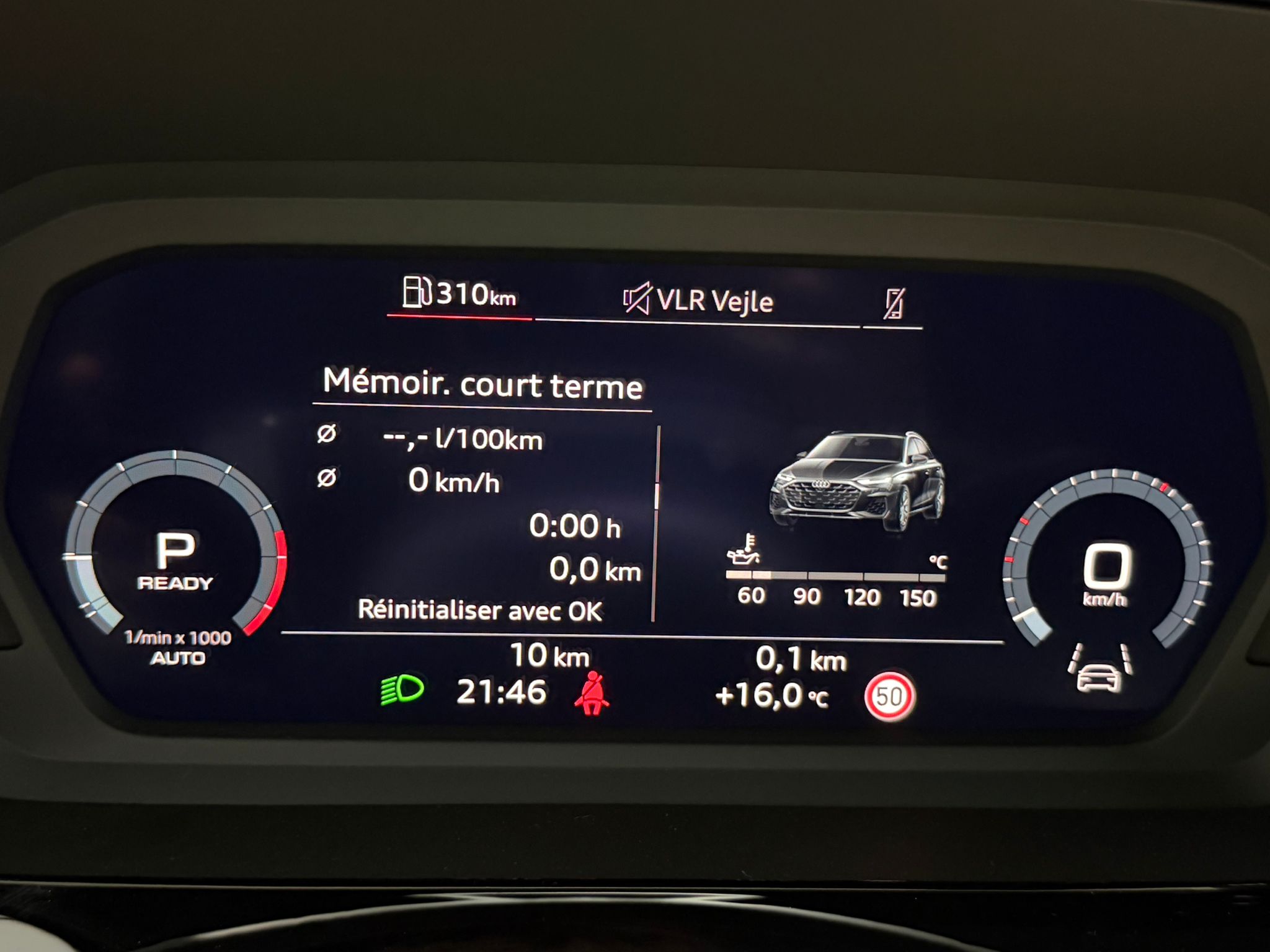 Pack assistance route - Régulateur de vitesse adaptatif avec assistance d'urgence et contrôle prédictif - Reconnaissance des panneaux de signalisation par caméra - Park assist plus avec système de stationnement avec affichage à 360 - Assistance latérale avec alerte de sortie et assistance au trafic transversal AR - Aide à l'embardée et aide au virage - Audi pre sense basic et Audi pre sense rear