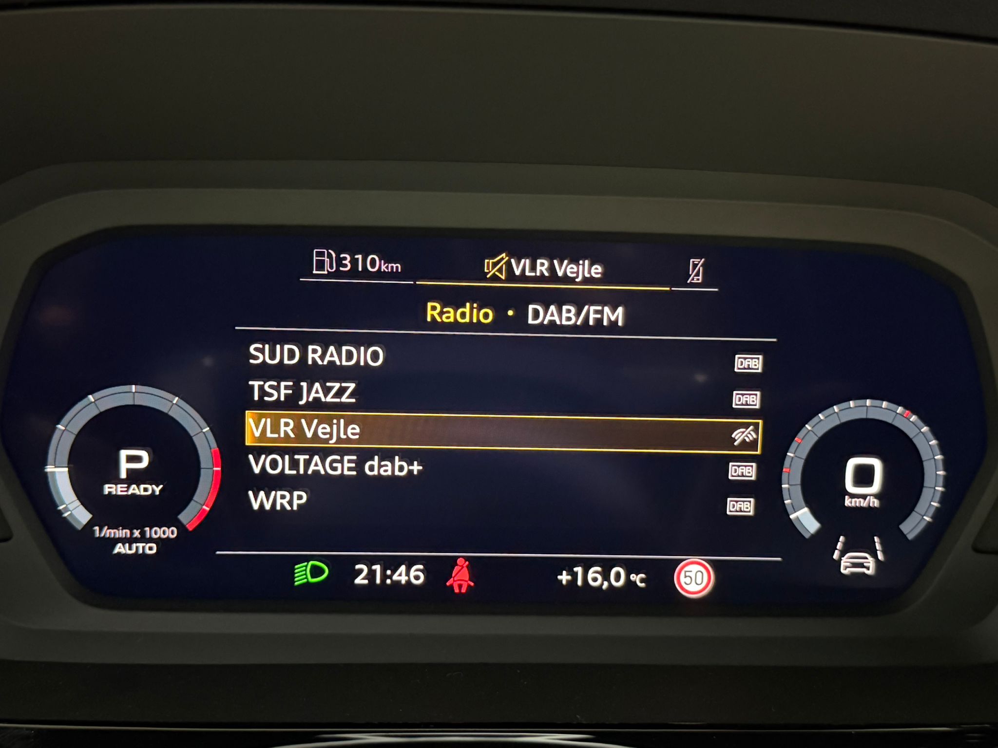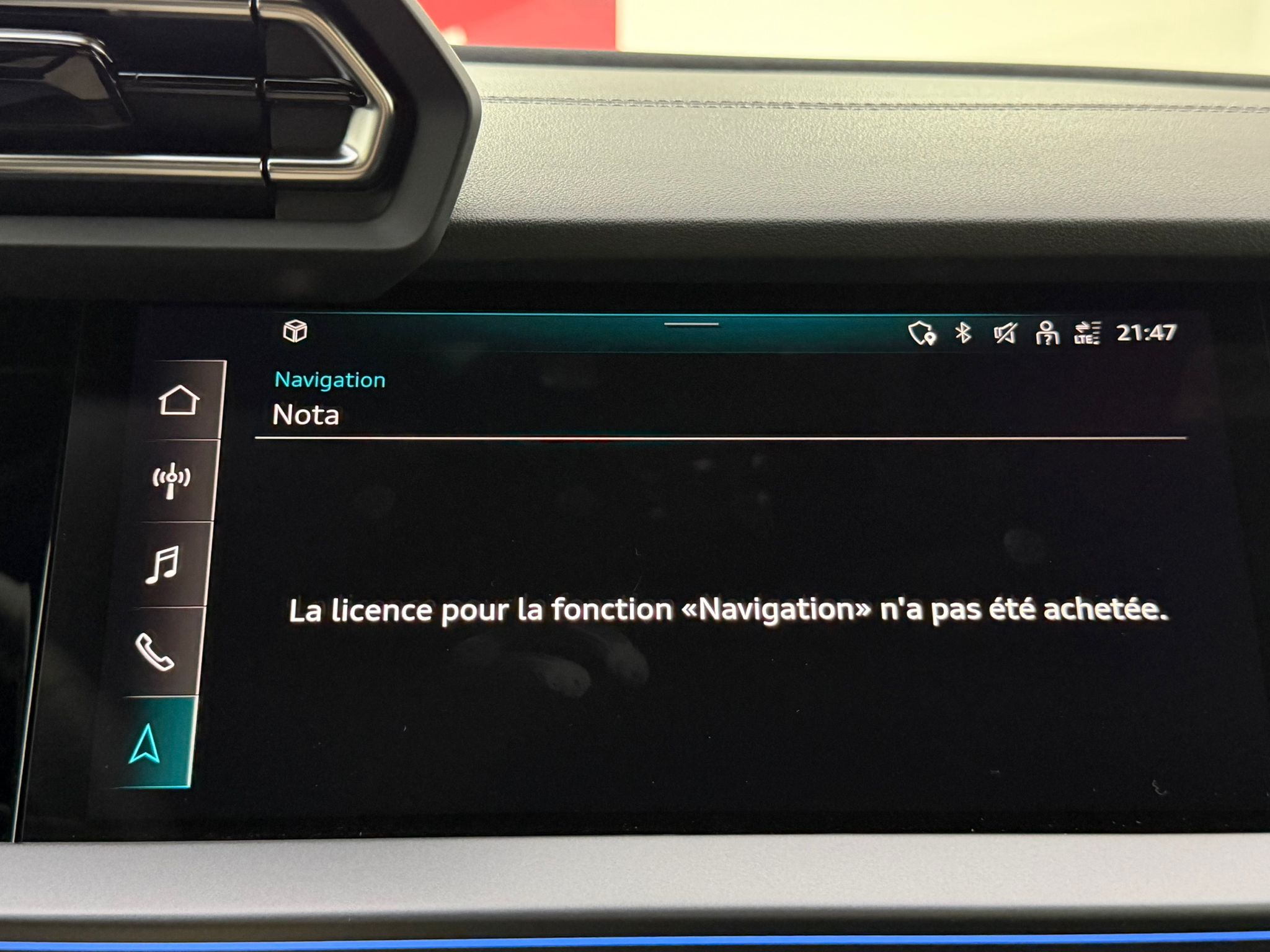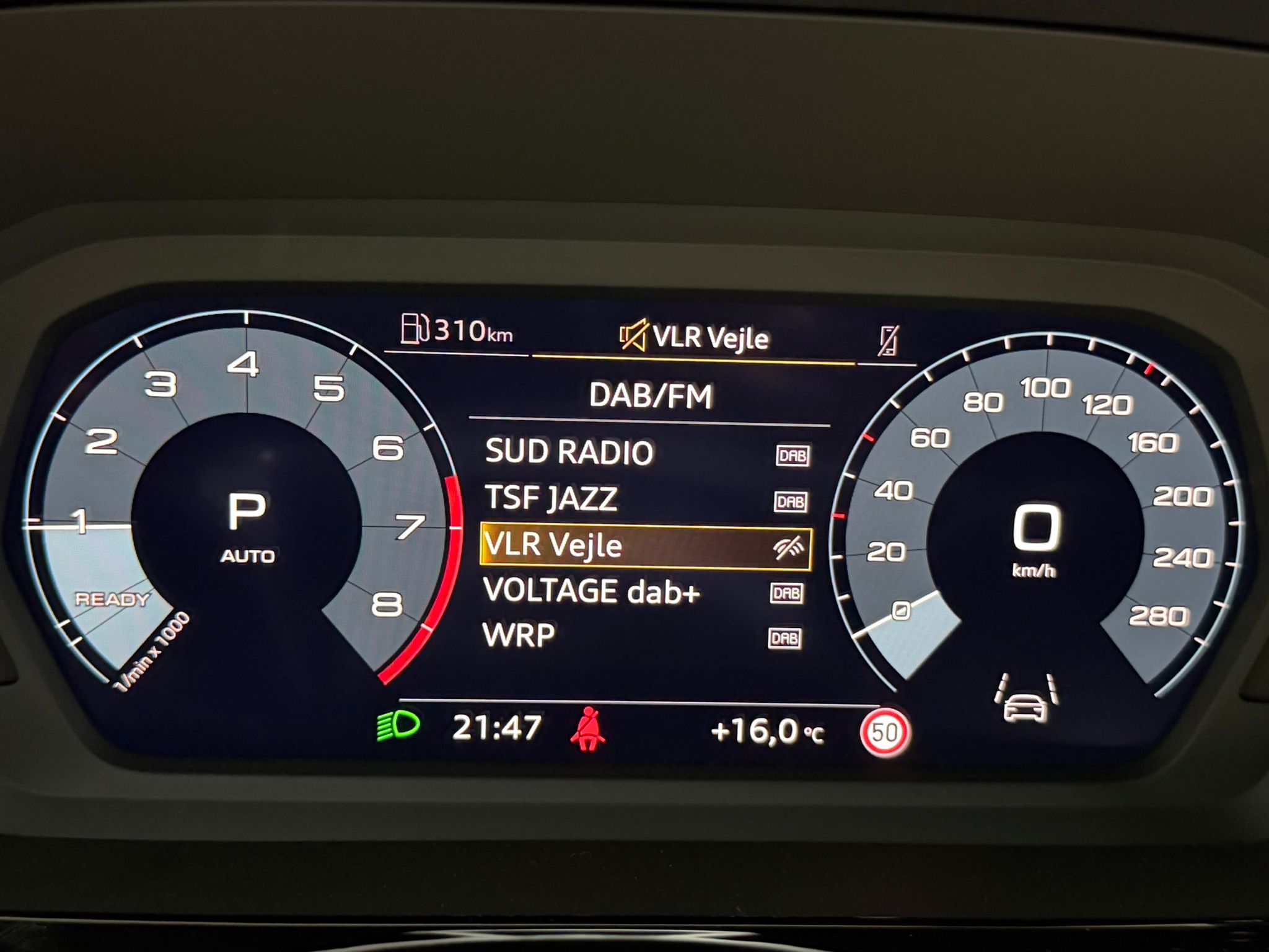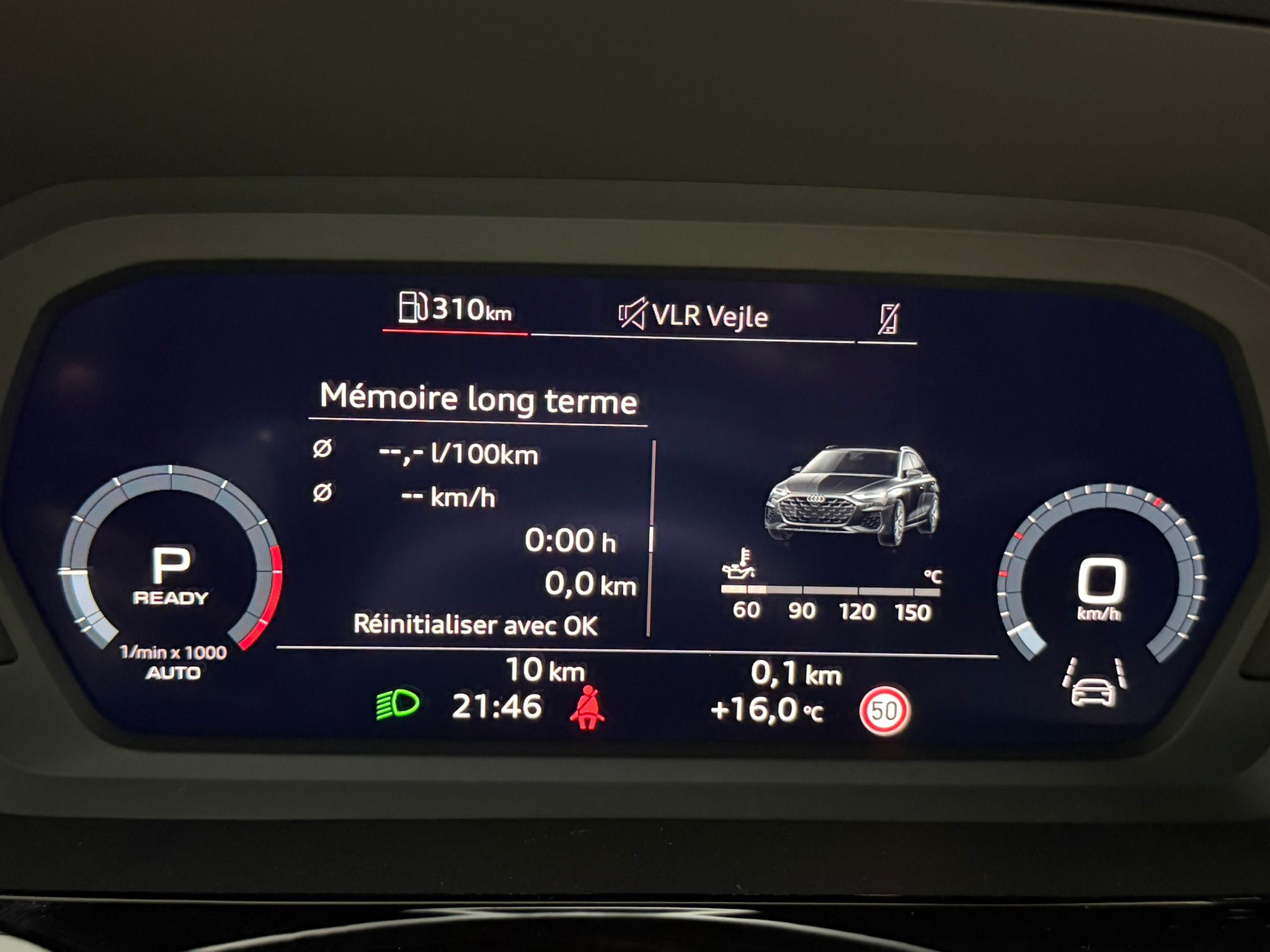 Pack assistance route - Régulateur de vitesse adaptatif avec assistance d'urgence et contrôle prédictif - Reconnaissance des panneaux de signalisation par caméra - Park assist plus avec système de stationnement avec affichage à 360 - Assistance latérale avec alerte de sortie et assistance au trafic transversal AR - Aide à l'embardée et aide au virage - Audi pre sense basic et Audi pre sense rear
