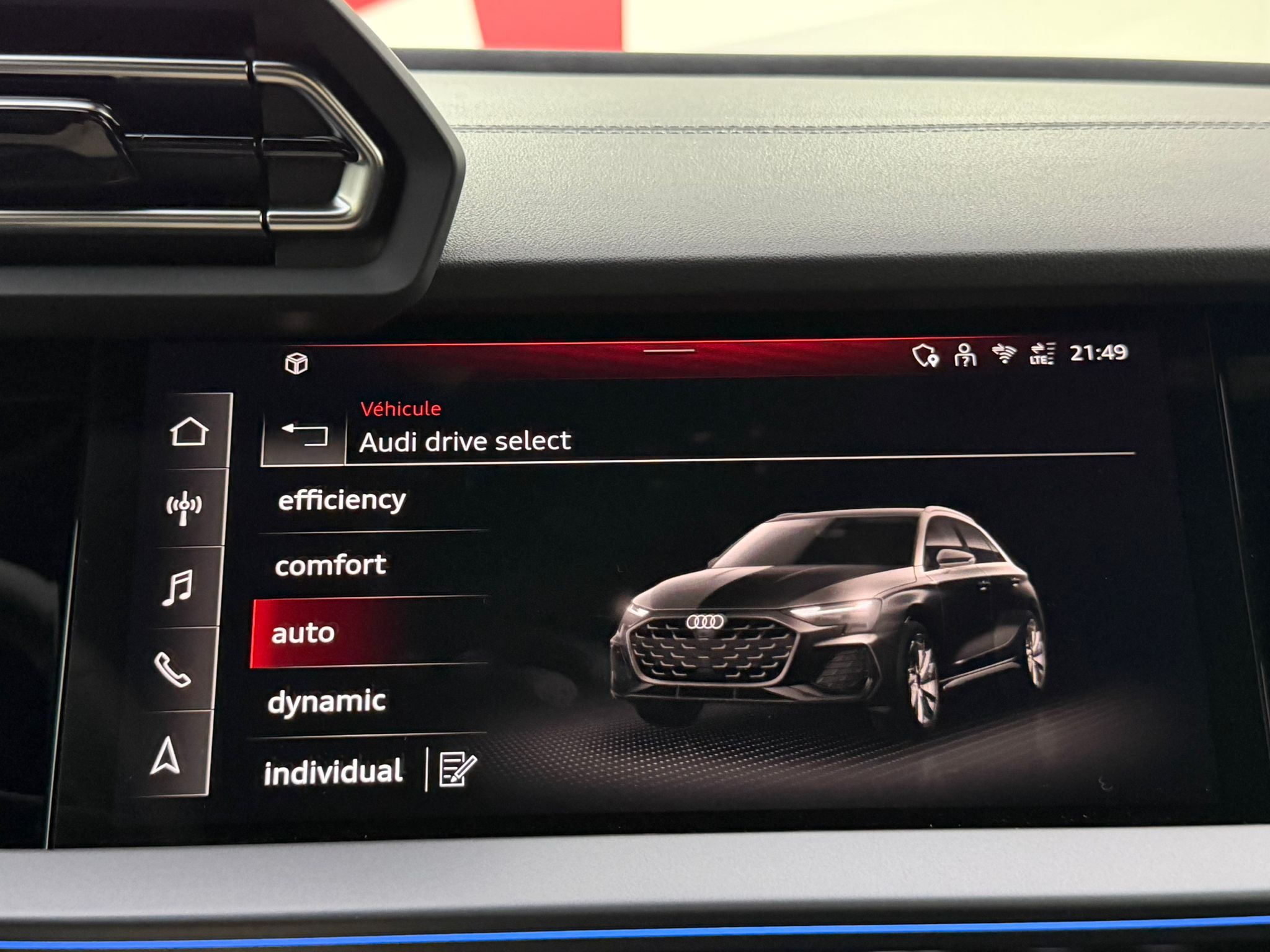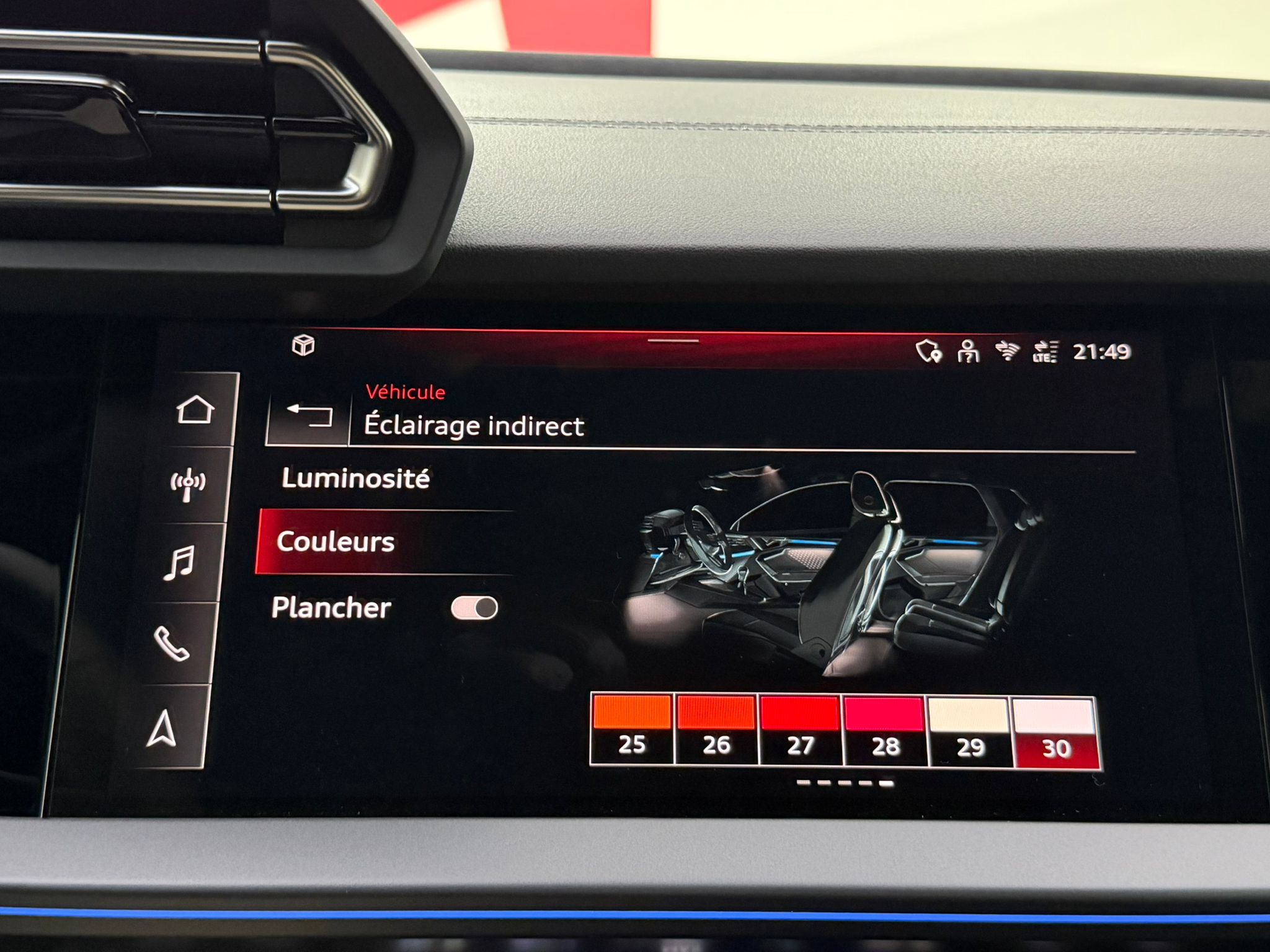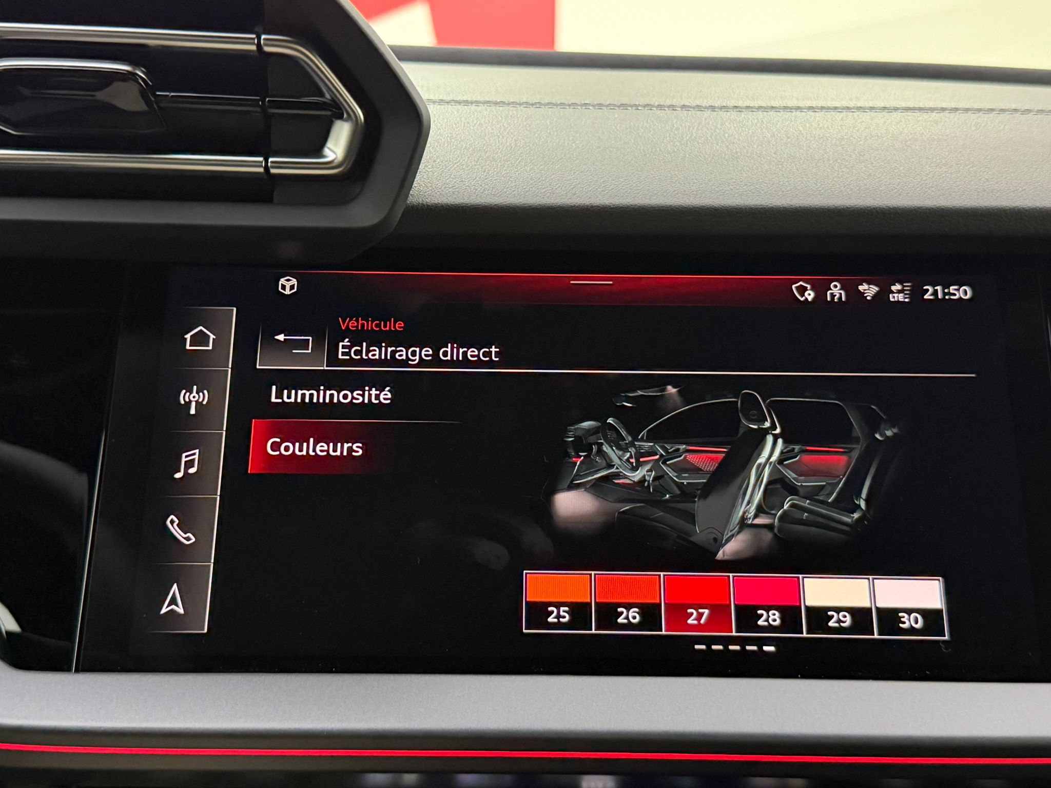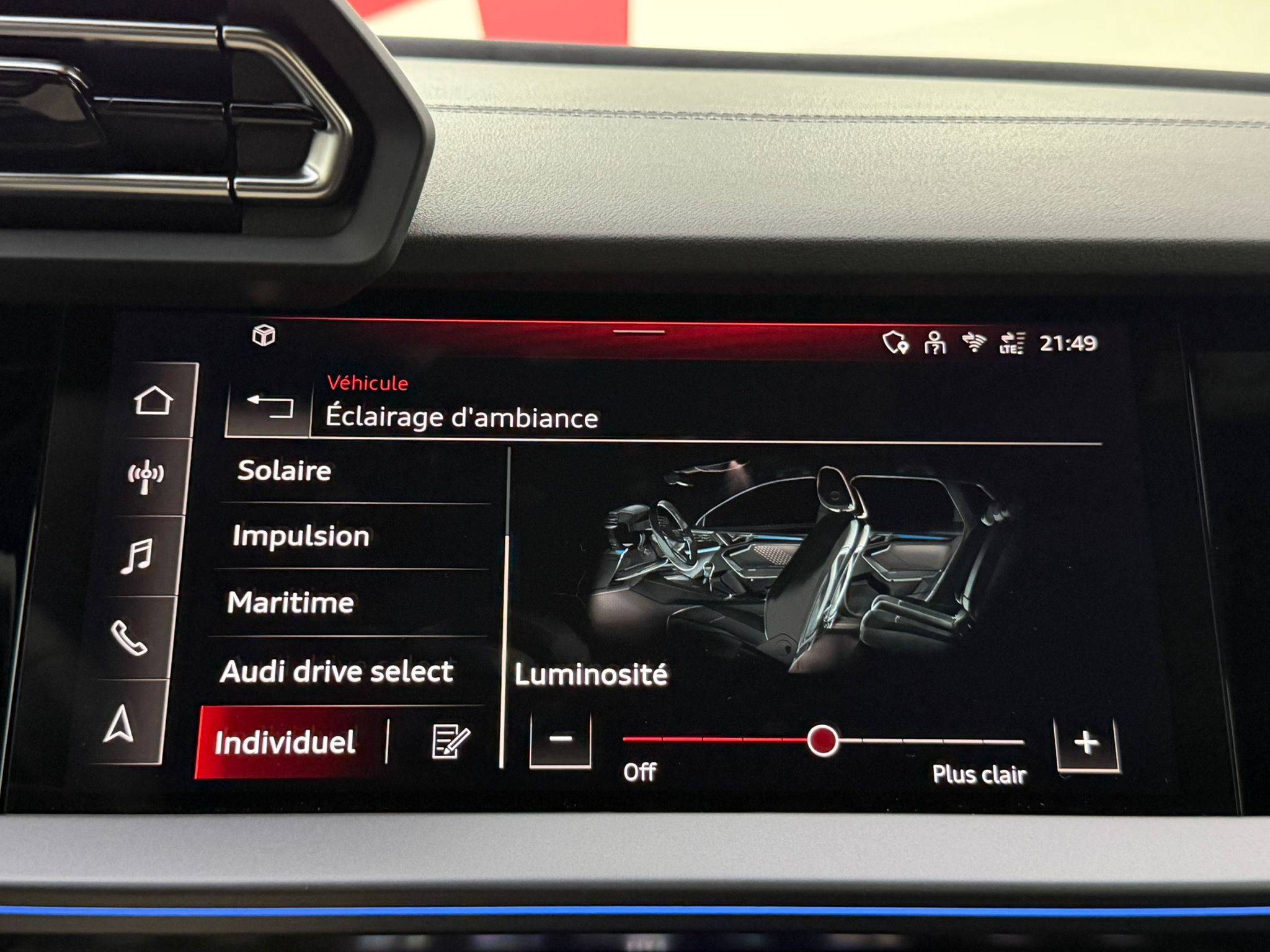 Pack éclairage d'ambiance pro 5 profils de couleurs prédéfinis et interactifs activé via l'Audi Drive Select