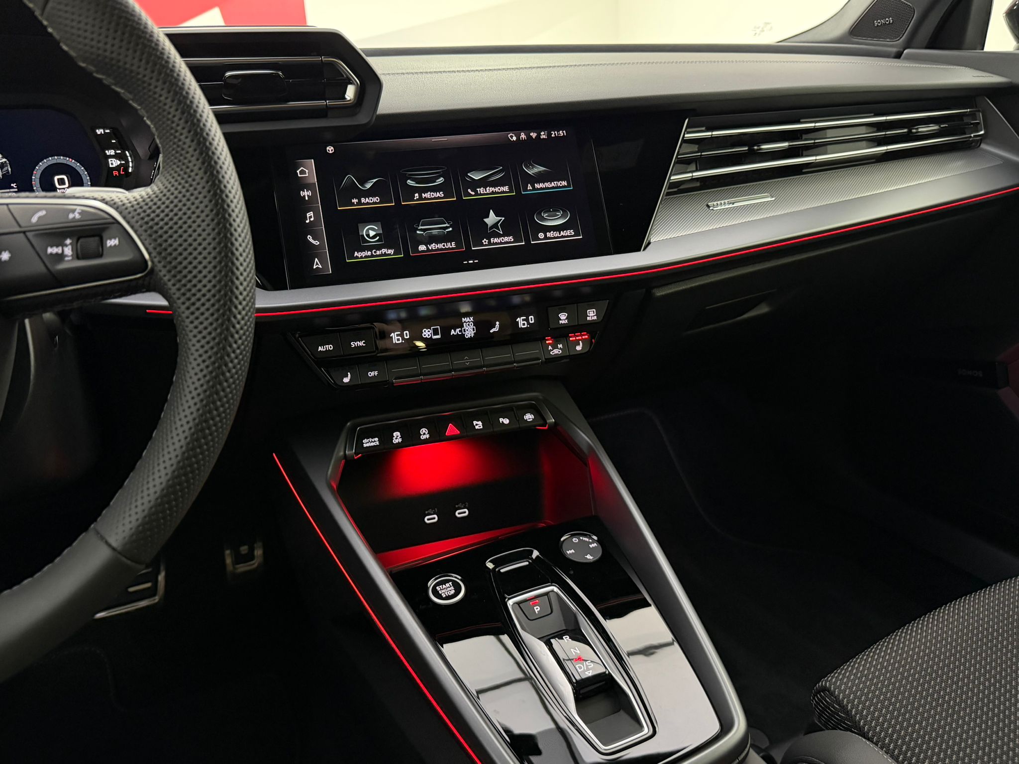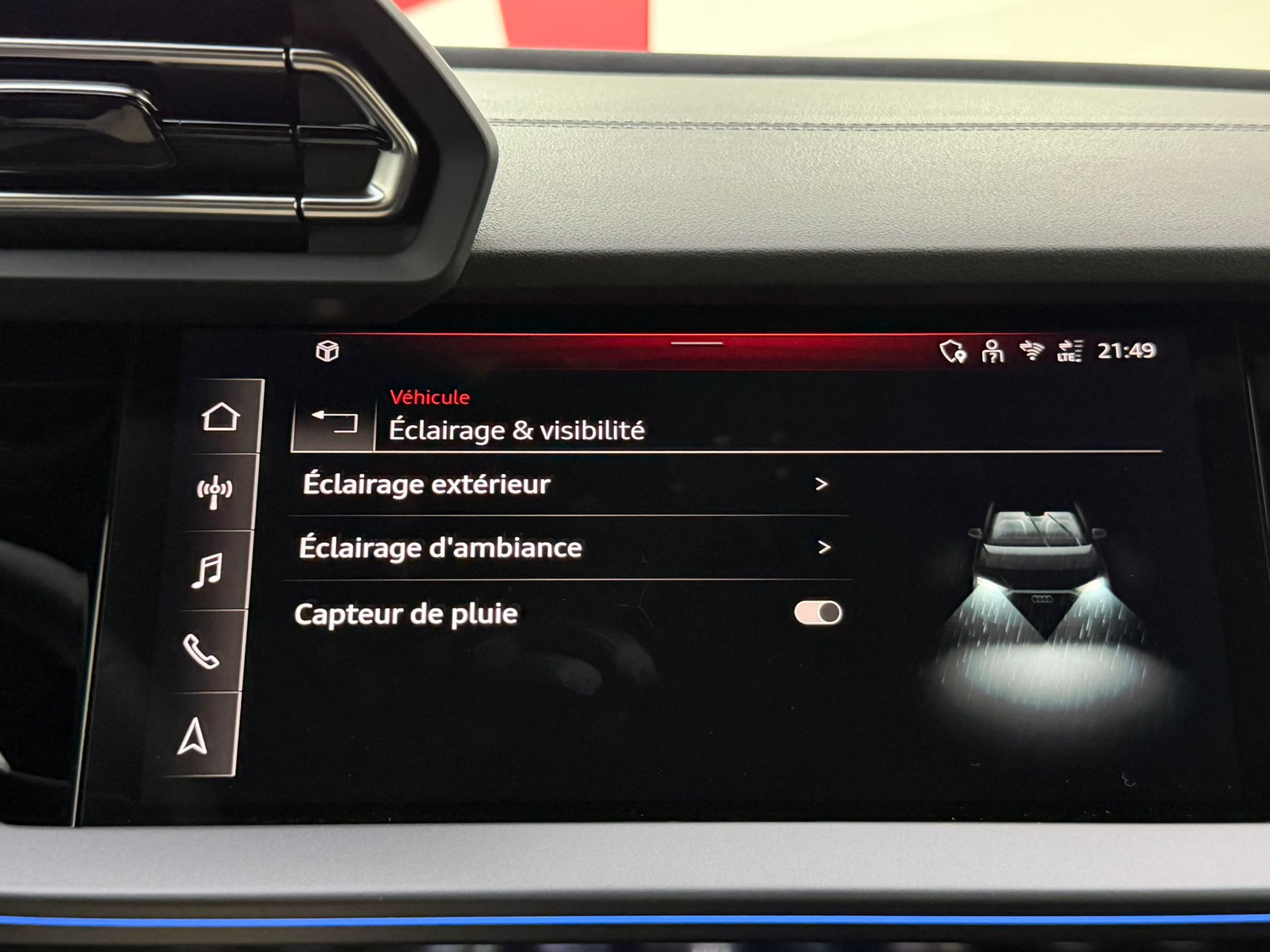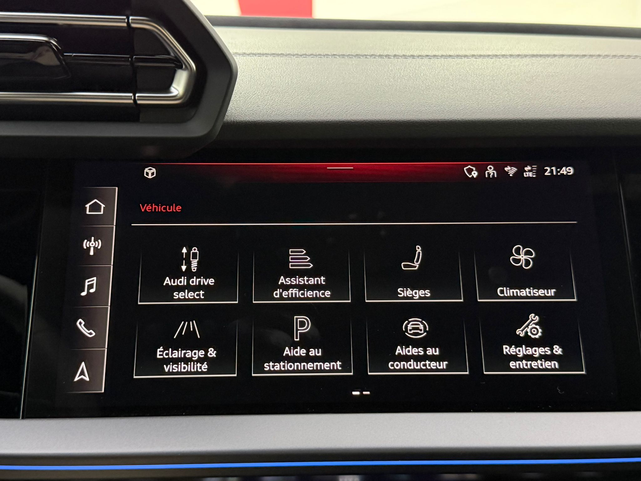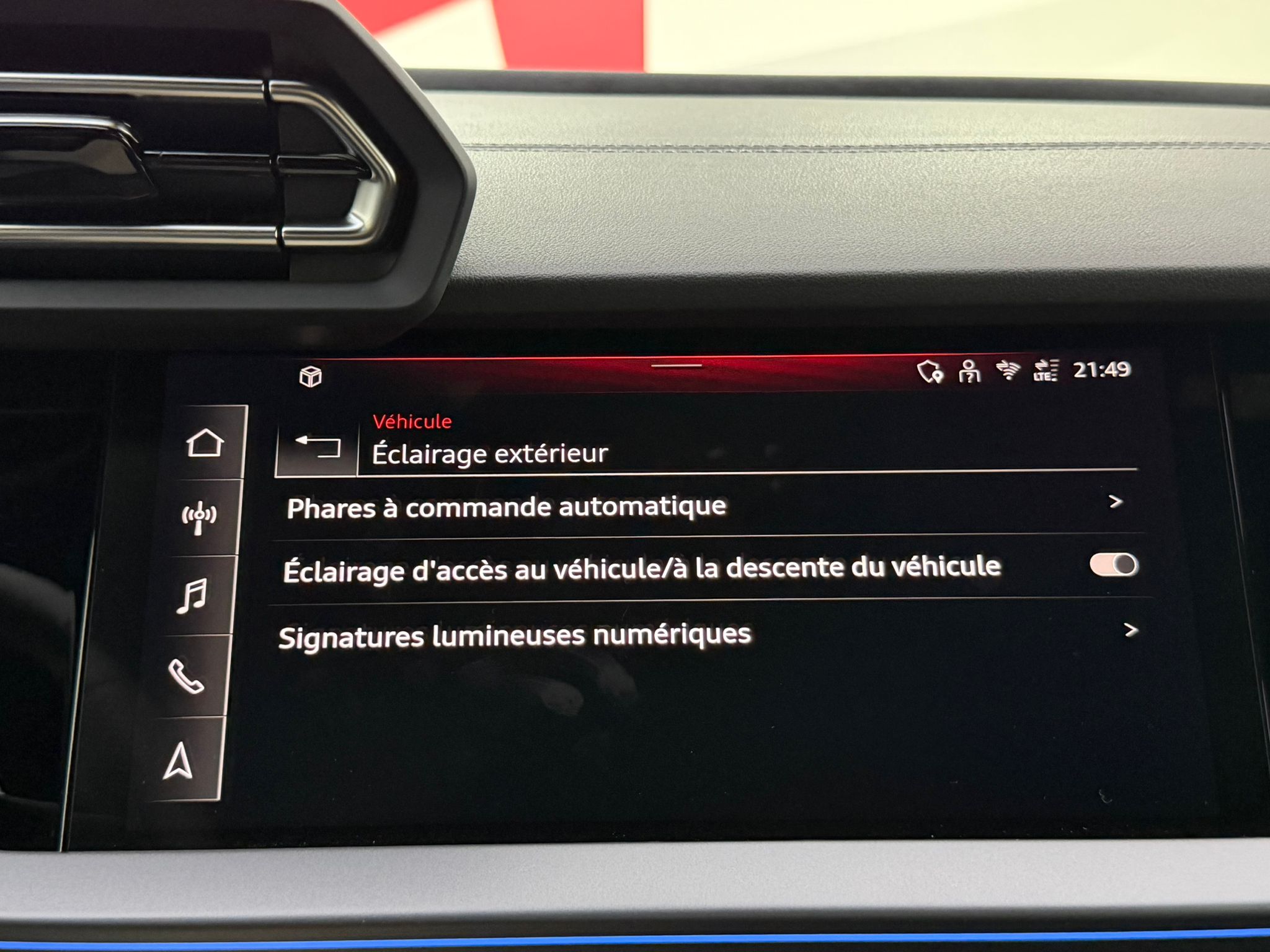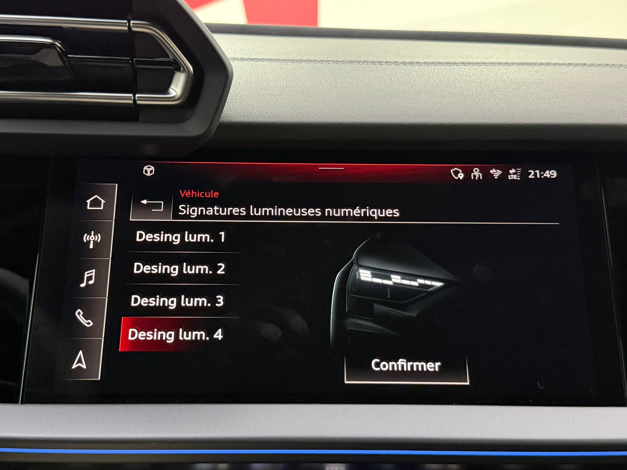 Pack éclairage d'ambiance pro 5 profils de couleurs prédéfinis et interactifs activé via l'Audi Drive Select