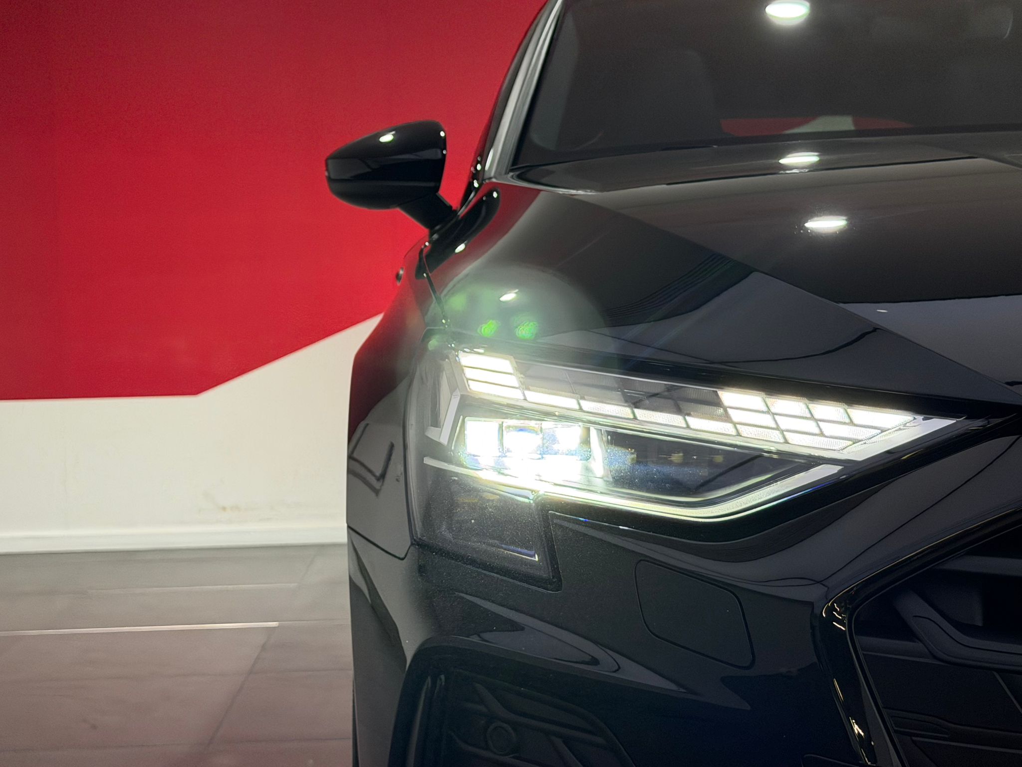 Pack Esthétique Noir Plus Reprend tous les éléments de Pack Esthétique Noir + anneaux Audi en noir AV/AR du véhicule et identification du modèle/moteur en noir