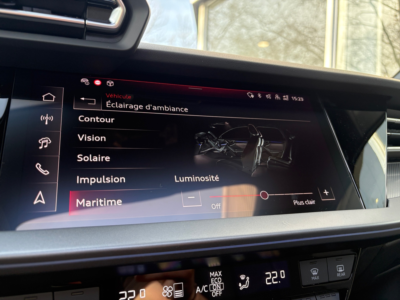 Pack éclairage d'ambiance plus: Pack éclairage d'ambiance, 30 couleurs différentes -30 couleurs pour le profil personnalisé. Les ajustements sont possibles pour: - Eclairage de contour du tableau de bord, des portes AV/AR, du compartiment de rangement de la console centrale et de la console centrale - Eclairage d'ambiance des portes AV/AR - Porte-gobelets éclairés - En blanc: éclairage d'entrée sous les portes AV/AR et des caves à pieds AV/AR Lorsque le motif thématique est activé, le pack adapte automatiquement l'ambiance chromatique au motif thématique activé