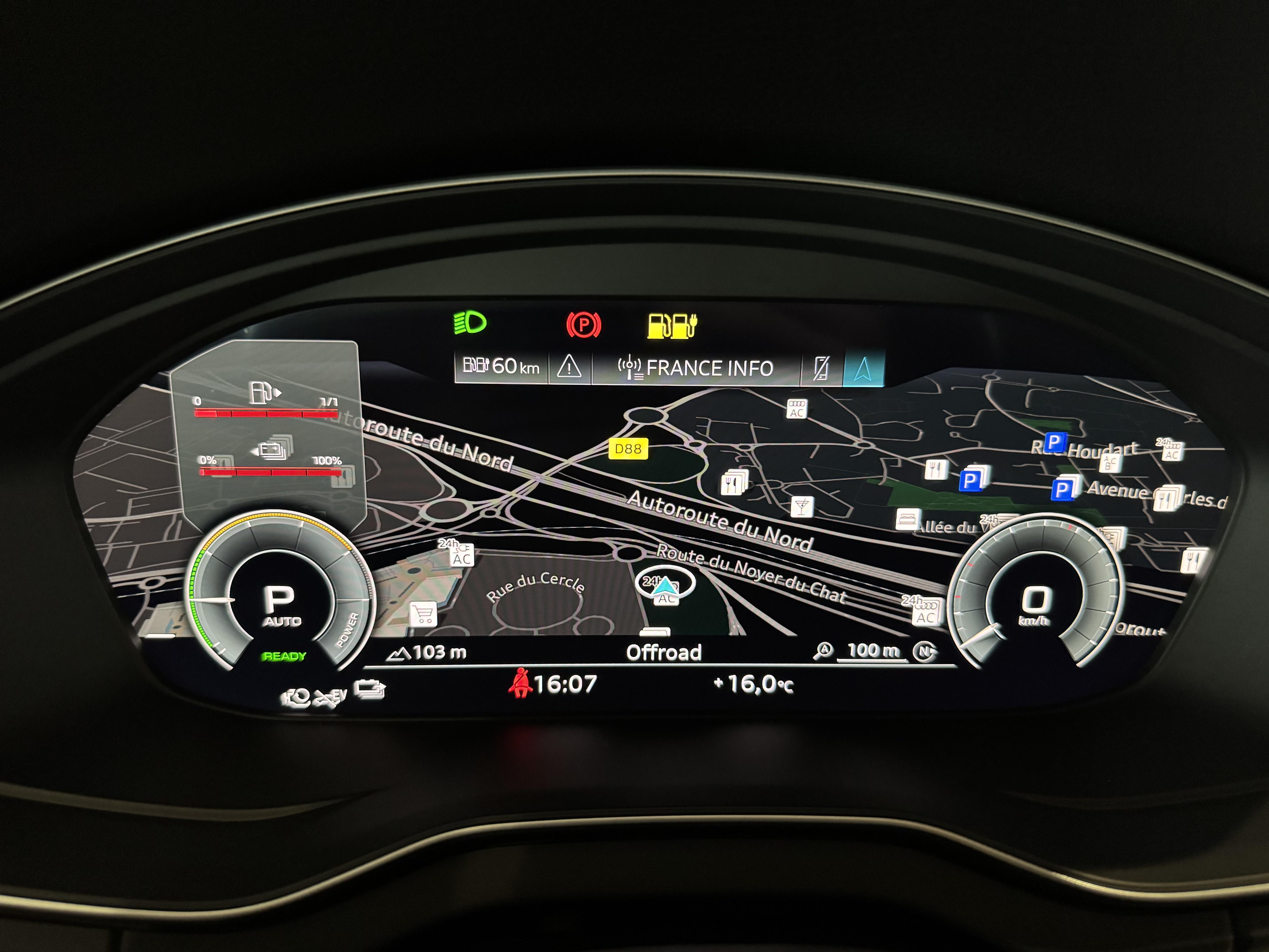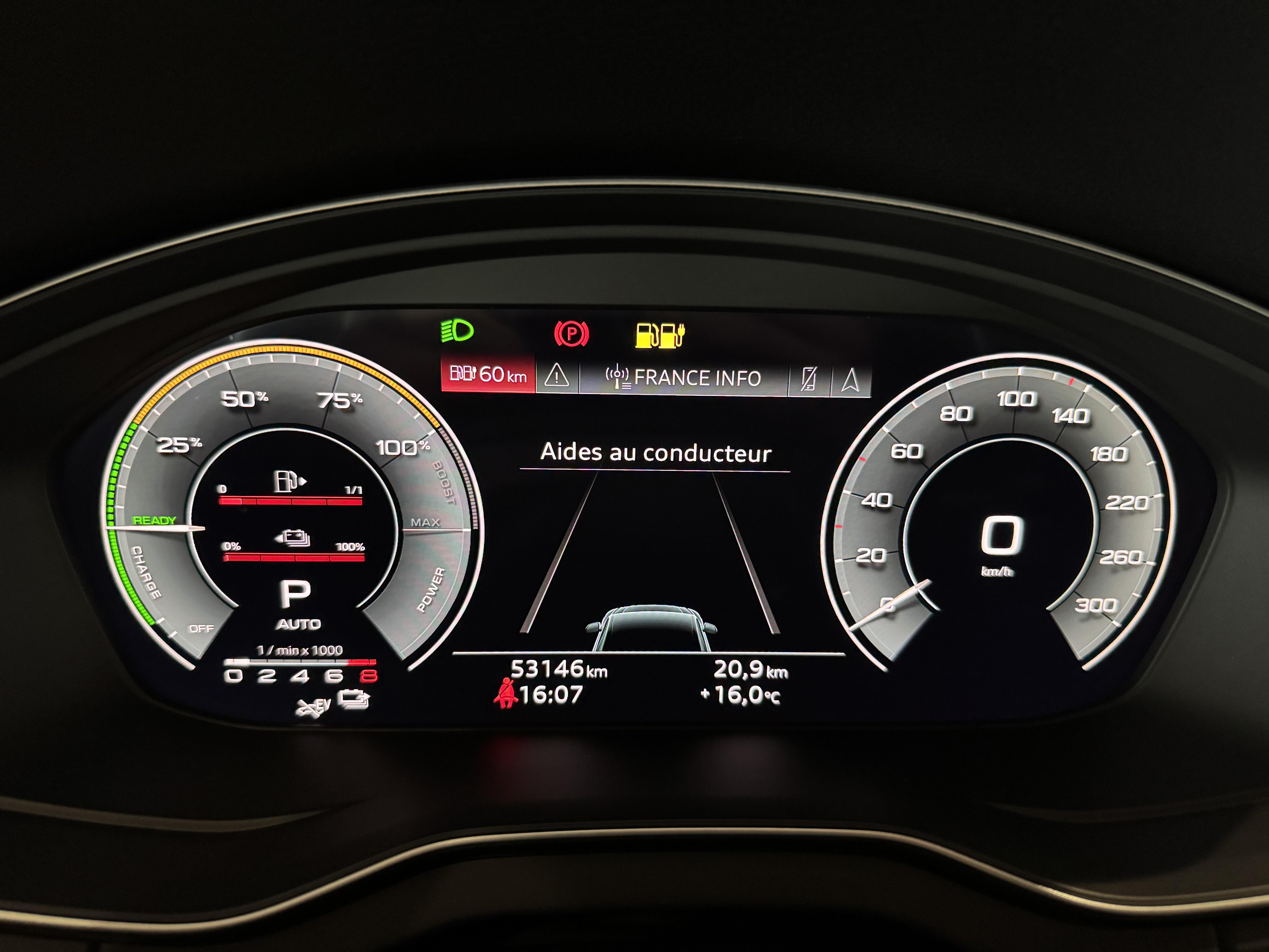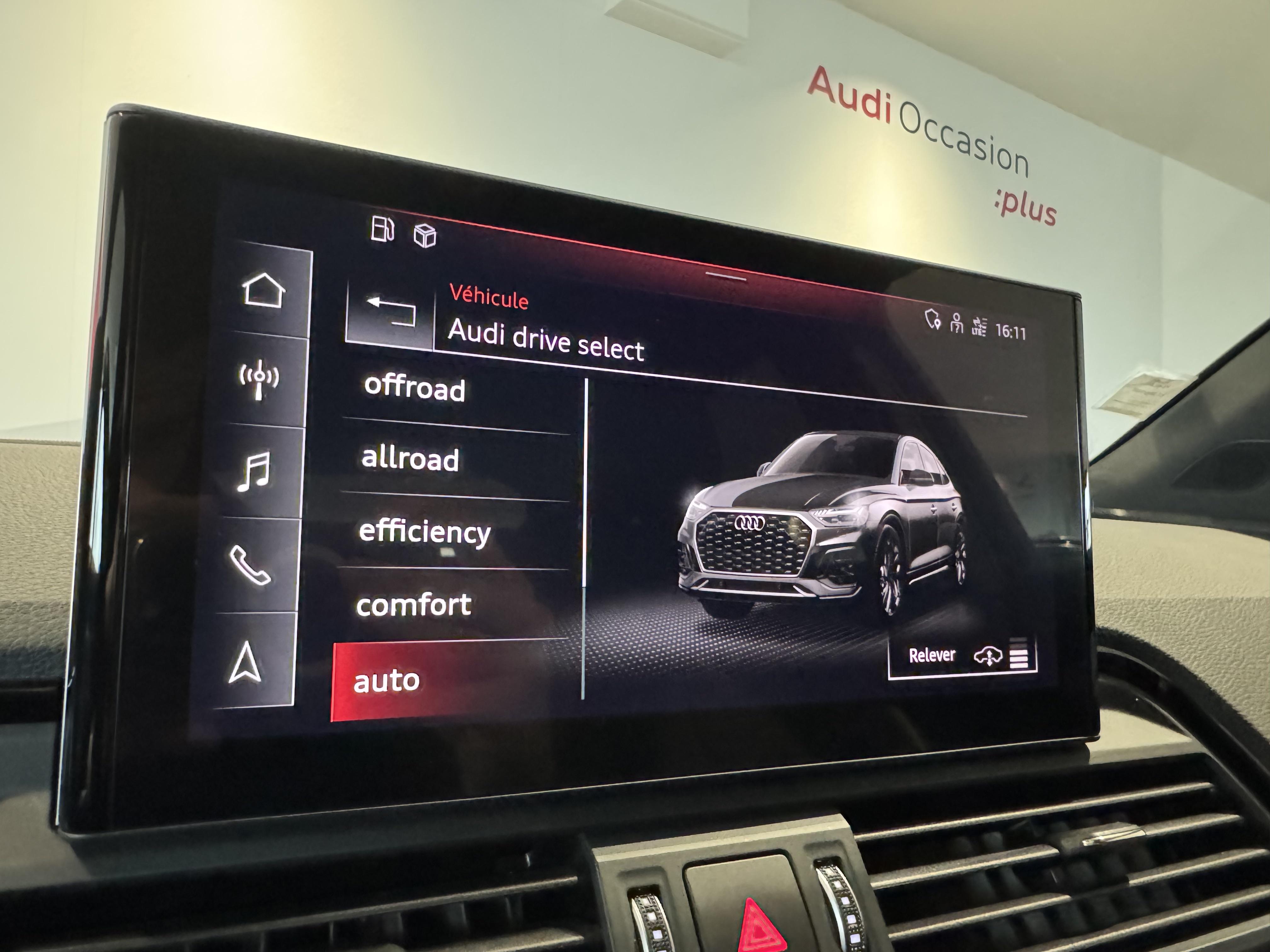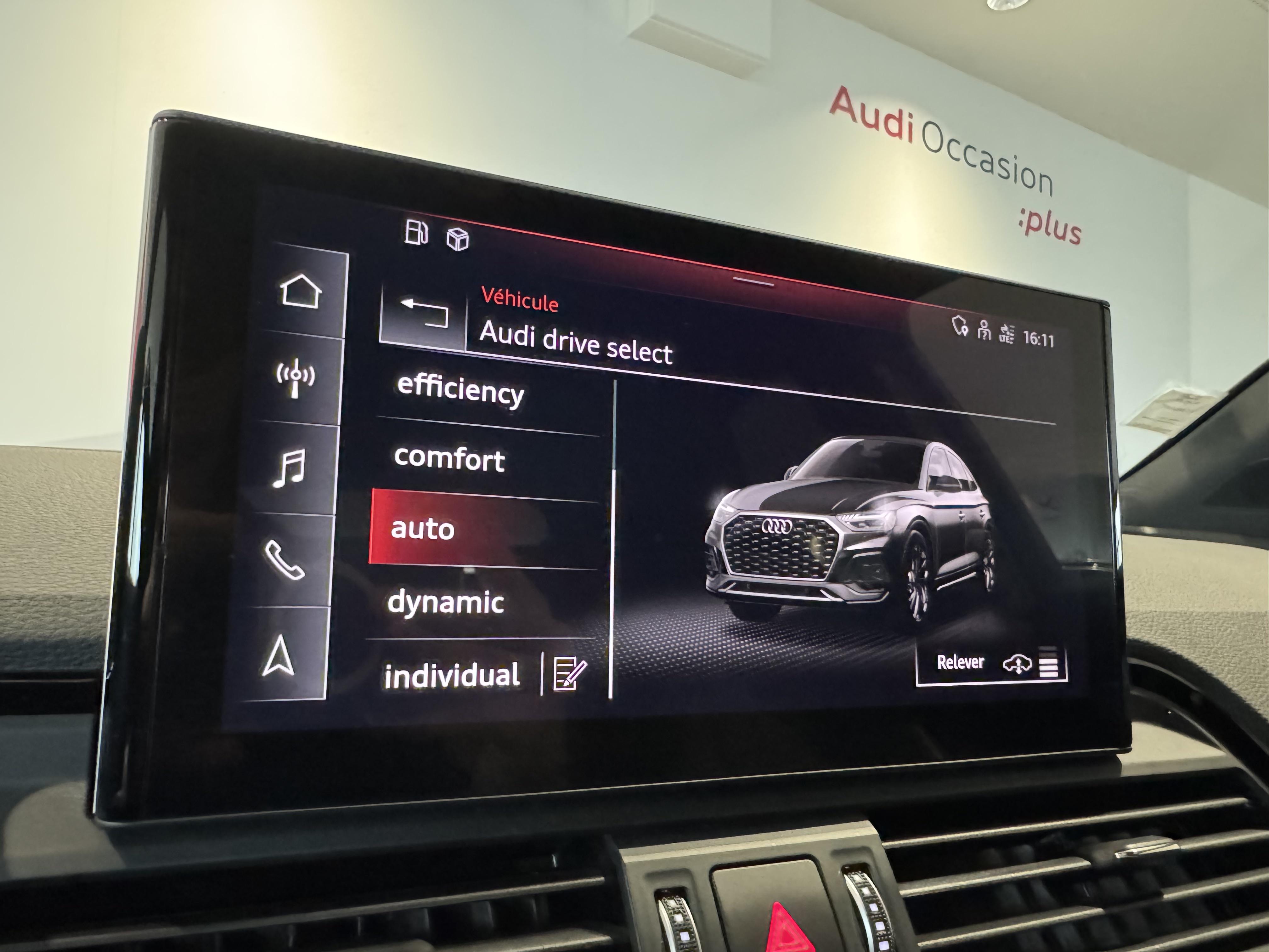 Pack Assistance Route - Adaptive cruise control incluant fonction Stop&Go avec assistant de conduite en embouteillage - Assistant d'efficacité prédictive - Audi pre sense front incluant assistant d'évitement d'urgence et assistant de changement de direction - Audi active lane assist