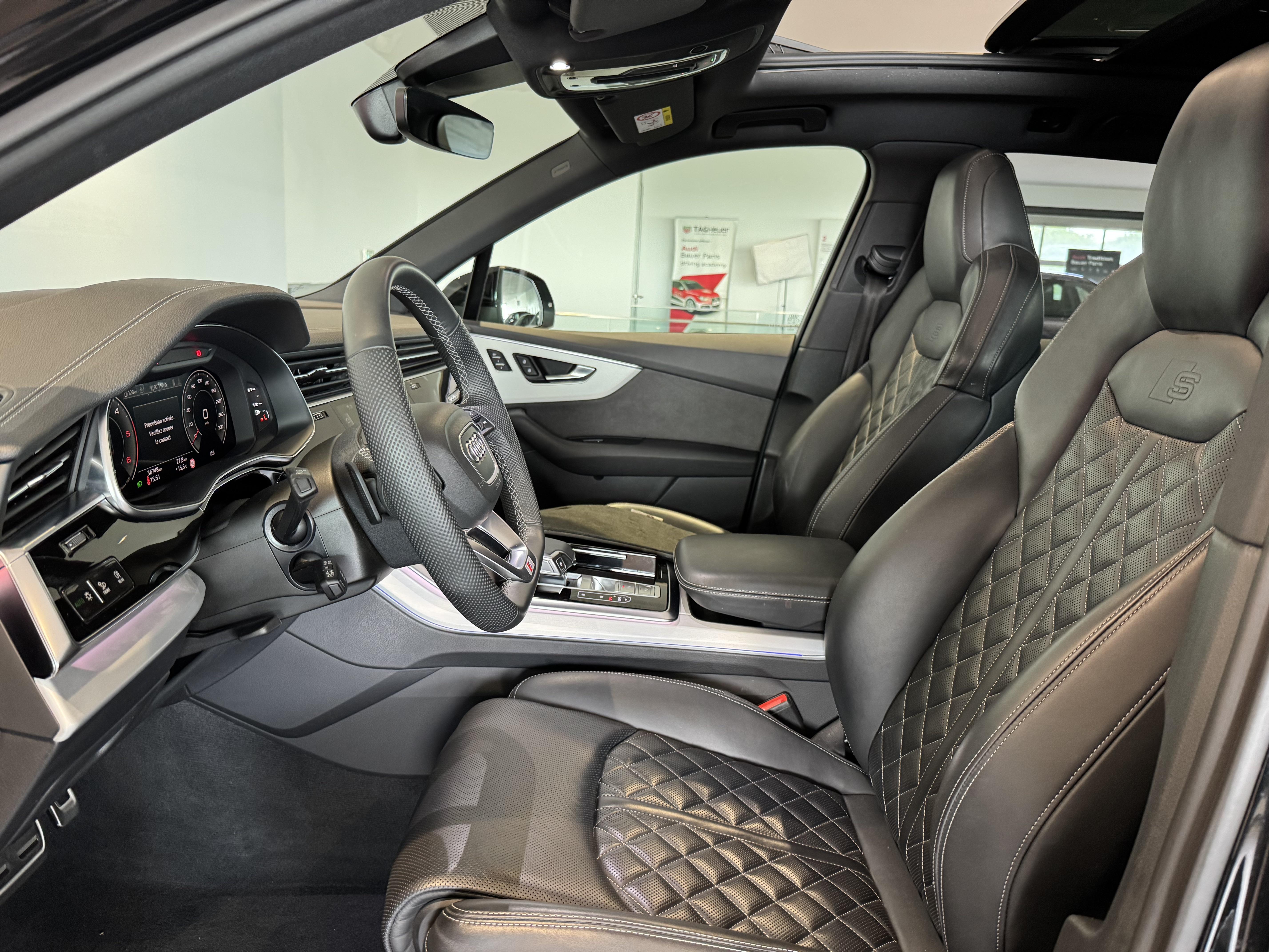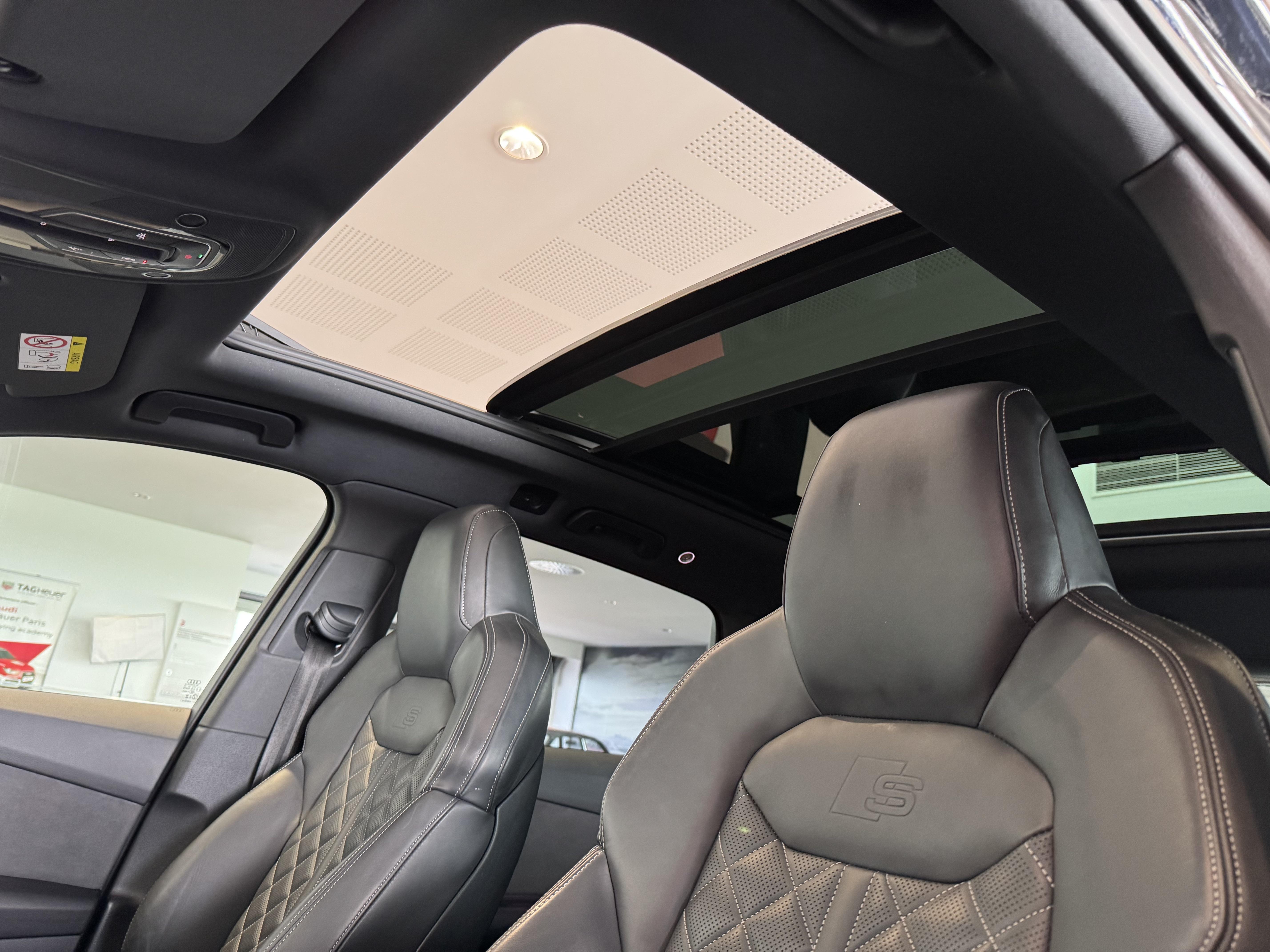 Sellerie en cuir Valcona avec surpiqûres en losanges et embossage "S" sur le dossier des sièges AV