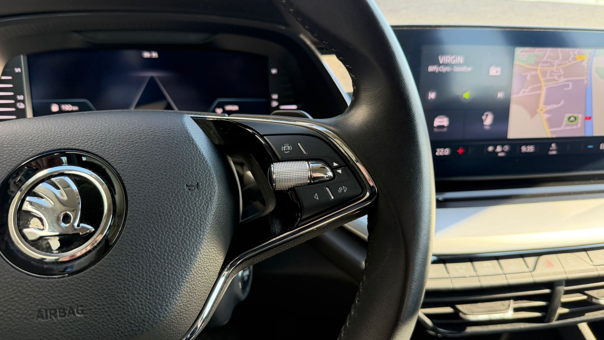 Volant 2 branches en cuir, chauffant, multifonctions et intégrant les palettes au volant